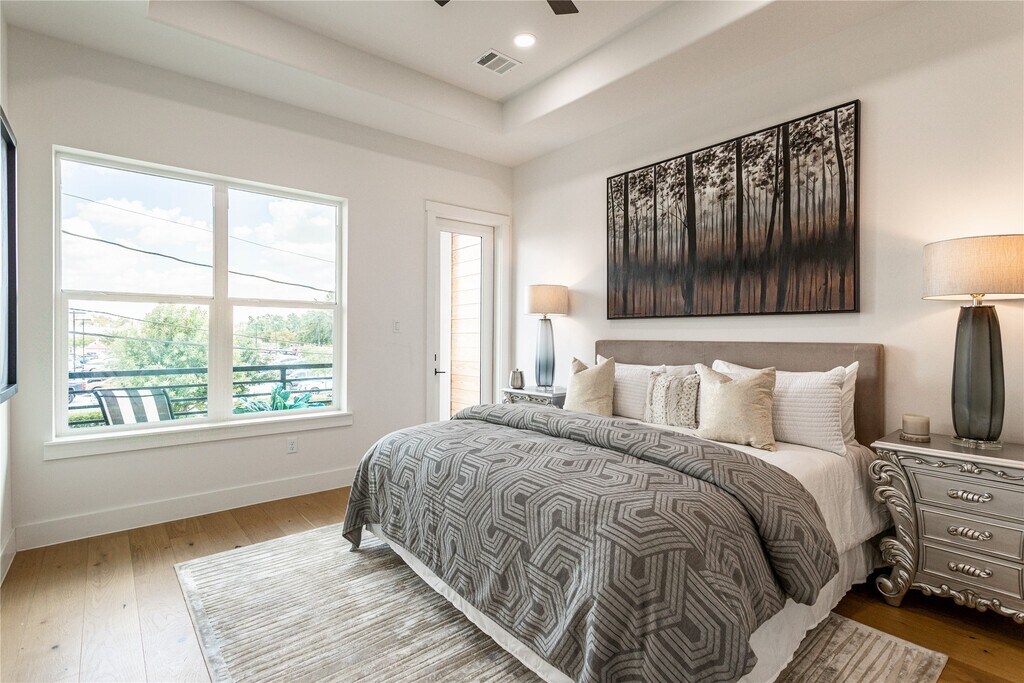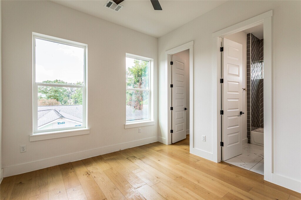 Welcome to 1810 Lula Street,a stunning new construction in the heart of the Heights offering 3 bedrooms,3.5 bathrooms,and over 2,100 sq ft of thoughtfully designed living space. This home features a sleek open-concept layout with a gourmet kitchen outfitted with stainless steel appliances,quartz countertops,custom European cabinetry,and a designer tile backsplash. The living area showcases wide-plank engineered hardwood floors,oversized windows,and a striking center-console fireplace. The spacious primary suite includes a private balcony,walk-in closet,and a spa-like bath with a soaking tub and double vanity. Each secondary bedroom has its own en-suite bathroom,providing comfort and privacy. Enjoy outdoor living with a fully fenced backyard,all within walking distance to the Houston Farmers Market and easy access to I-45 and I-69. With no HOA and move-in ready convenience,1810 Lula St. delivers elevated living in one of Houston’s most vibrant neighborhoods. MLS# 43218750
