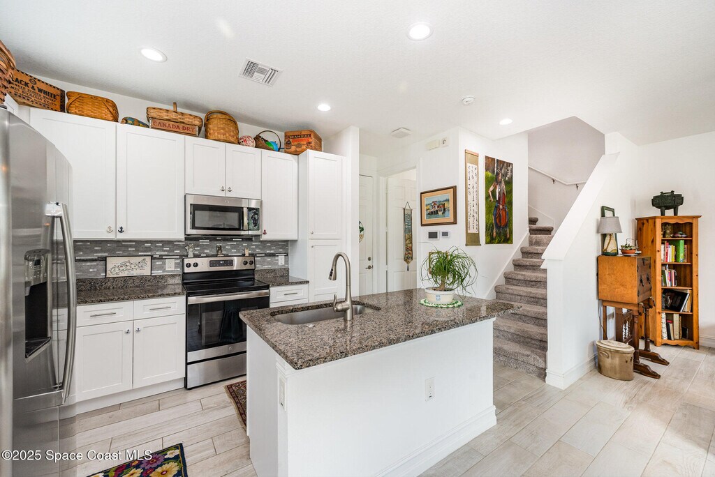 Built in 2022,this beautifully upgraded 3-bedroom,2.5-bath corner unit is filled with natural light and contemporary charm. The open-concept kitchen features upgraded cabinets,granite countertops,and wood-like tile flooring that flows throughout the main living areas. Located in a desirable gated community just minutes from downtown Eau Gallie,residents enjoy resort-style amenities including a sparkling pool,relaxing spa,fitness center,and clubhouse. With its prime location and stylish finishes,this townhome offers the perfect blend of comfort,quality,and convenience. MLS # 1072623