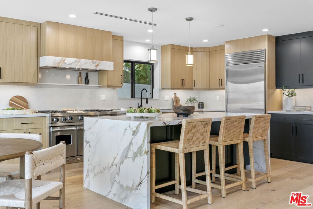 This beautifully updated home set on a spacious 17,487 sq. ft. lot, offers modern luxury, privacy, and panoramic views throughout. Located in the sought-after Lake Encino community, the residence welcomes you with lush landscaping, palm trees, and custom architectural lighting. Inside, a grand 17-ft foyer with hardwood floors and a glass-panel staircase leads to open-concept living spaces filled with natural light. This home includes 6 bedrooms, 4 bathrooms, custom executive office and much more. Doors open to a beautiful backyard featuring a custom pool and spa with Baja shelf, outdoor kitchen with Viking BBQ and Coyote appliances, elegant dining space, and low-maintenance, drought-conscious landscaping. The chef's kitchen is equipped with solid wood cabinetry, quartz countertops, Sub-Zero refrigerator and freezer, and premium Viking appliances. The open layout flows into a spacious living and dining area with fireplace and recessed lighting. HOA amenities include private tennis courts. Optional roaming security available via third-party provider. MLS# 26633953