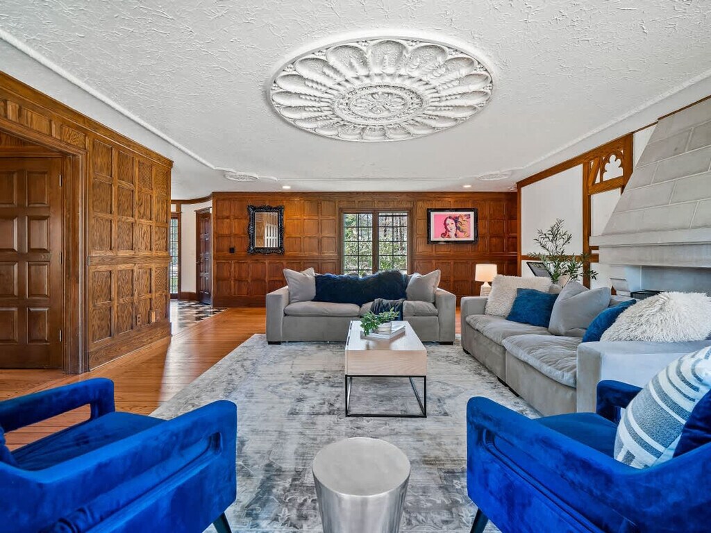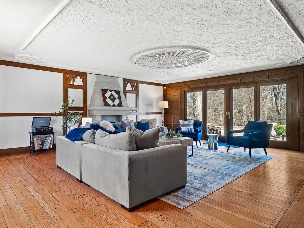 The advertised rate of $9,092/month is the lowest available price, based on a 30 day(s) stay with a move-in date of March 27, 2026. Rates vary depending on the duration of stay, season, and other parameters. For exact pricing and additional pricing components, please visit our website and enter your desired move-in and move-out dates. The rate is applicable when billed upfront; it can be higher if billed in multiple payments. Welcome to this beautiful, sprawling estate in Akron, Ohio. With over 4,000 sqft of living space, this 5-bedroom, 4.5-bathroom home can accommodate large groups and families with ease. Feel at home in this unique estate, which is ready to host your group of up to 10 guests, providing the perfect blend of elegance, comfort, and modern amenities. This estate home features hardwood floors, a large family room with a smart TV, and a spacious dining room with seating for 10. The fully equipped kitchen includes an island with seating for 4, an additional sink, and a coffee station with a drip and Keurig coffee maker. Enjoy the cozy seating in the hearth room with beautiful backyard views, or relax in the library/study with stunning wood paneling from a 16th-century Scottish castle and a desk with a computer monitor. The finished basement retreat offers additional living space with a smart TV, a second kitchen, and a full bathroom with an extra-large jacuzzi tub. There is also a first-floor full bath, half bath, and laundry room for added convenience. A damage protection option is required for all reservations and is processed through our third-party system prior to arrival. Guests may choose either a $600 refundable security deposit (pre-authorized hold, not a charge, released after a damage-free inspection) or a non-refundable damage waiver of $60, which covers accidental damages beyond normal wear and tear. The outdoor oasis features over 1,000 sqft paver patio/terrace overlooking a private backyard and nature retreat. Multiple sliding glass doors provide easy indoor-outdoor access. Outdoor furniture is perfect for morning coffee or evening wine. A fire pit and gas grill are ideal for outdoor gatherings. Keep noise to a minimum outside between 10pm and 8am, as excessive noise levels will incur a $500 fine. Unauthorized parties or gatherings are strictly prohibited and will result in immediate removal and a penalty of $5000 for each instance of a party or disruptive gathering. No pets are permitted. No indoor smoking is allowed, and a minimum $500 charge will be applied for extra cleaning. A $150 charge will be applied for late check-out without prior notice. [SI]