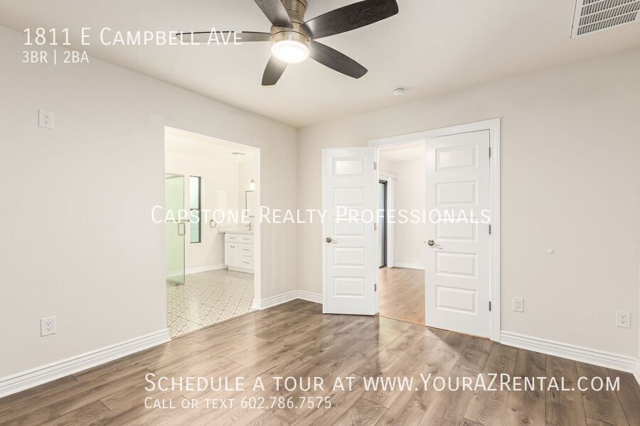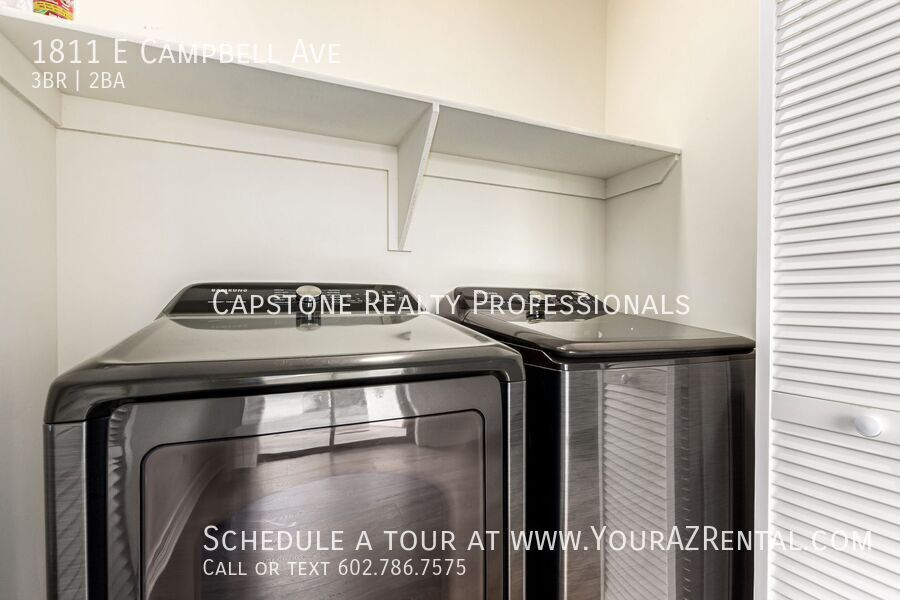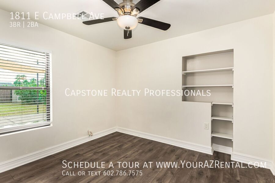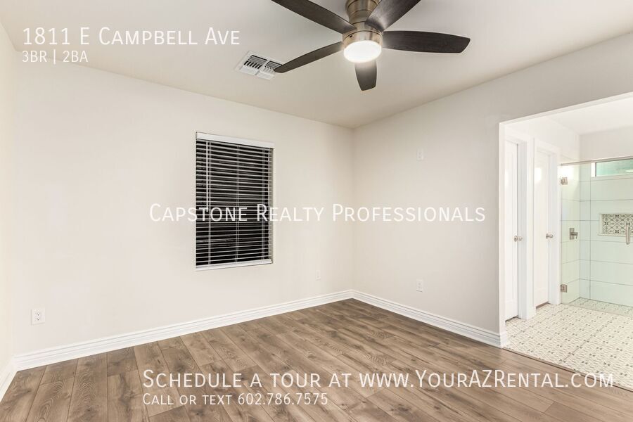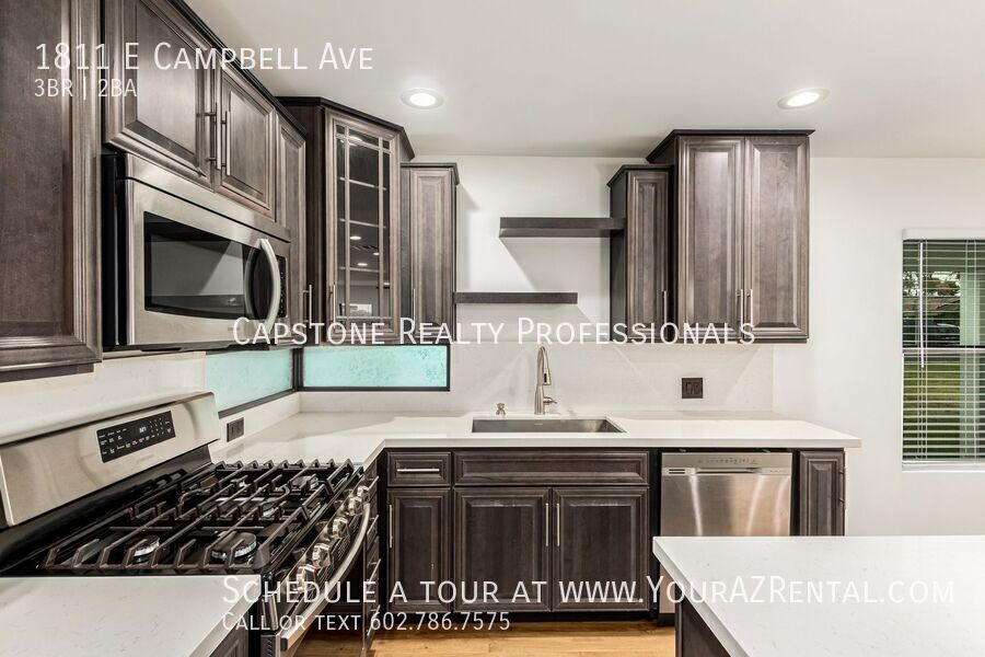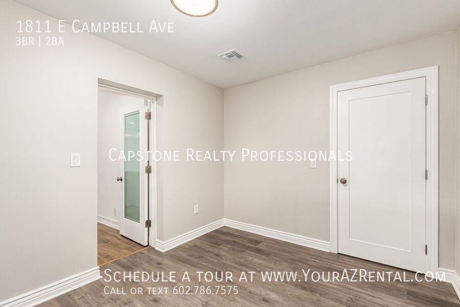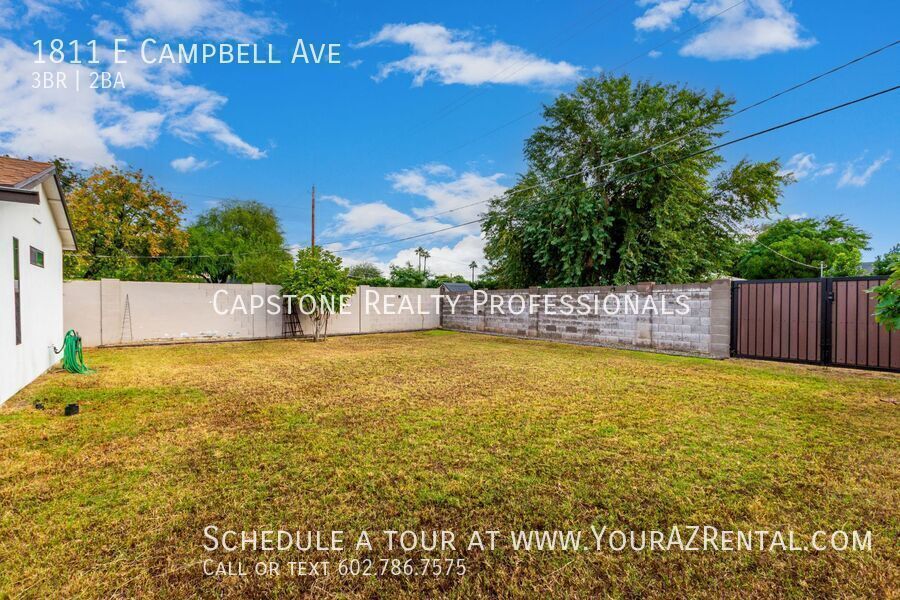 Welcome to 1811 E Campbell Ave — a beautifully updated 3-bedroom, 2-bathroom single-level home nestled in the heart of the desirable Biltmore neighborhood. Offering 1,652 square feet of modern living space on a spacious 7,440 sq ft lot, this move-in ready rental has it all. Enjoy stylish wood plank tile flooring, soft neutral paint, and recessed lighting throughout. The open-concept kitchen features an island, sleek dark cabinetry, and stainless steel appliances — ideal for everyday living or entertaining. The roomy bedrooms include a private primary suite with a stunning en-suite bath, complete with a double-sink vanity, modern tilework, and a walk-in closet. A dedicated bonus room is perfect for a home office or flex space. Outside, relax under the shade sail patio in your large backyard, perfect for lounging, pets, or play. Additional perks include a carport, included washer and dryer, and prime access to Whole Foods, Trader Joe’s, Biltmore Fashion Park, and the 51 freeway. This is a centrally located Phoenix home for lease in one of the most vibrant neighborhoods in town — and it's available now. Key Features: Bright & Open Living Area: Spacious layout with recessed lighting and tile/wood plank tile flooring. Modern Kitchen: Features stainless steel appliances, a kitchen island, an eat-in dining area, and ample wood cabinetry. Three Comfortable Bedrooms: Well-sized rooms offering plenty of space to relax. Primary Suite: Includes a walk-in closet and a large bathroom with backyard access, a private toilet room, step-in shower, and double-sink vanity. Outdoor Space: Enjoy a fenced backyard with a patio perfect for entertaining or relaxing. Prime Phoenix Location Conveniently situated near major freeways, parks, shopping, and dining, this home keeps you close to everything Phoenix has to offer. Whether you're commuting or enjoying the nearby attractions, you'll appreciate the convenience and accessibility. Don’t miss out on this beautiful home. Schedule a tour today! -- Monthly Fee: Resident Benefit Package $49.99 Security Deposit: Equal to one months rent Cleaning Deposit: $275.00 Pet Deposit: $200.00 per pet One Time Lease Administrative Fee: $150.00 Carbon Monoxide Detectors Dryer Smoke Detectors Washer Wood Flooring