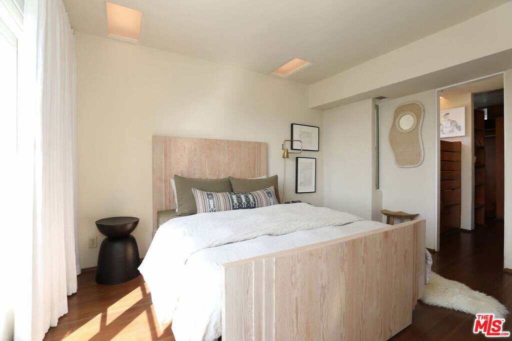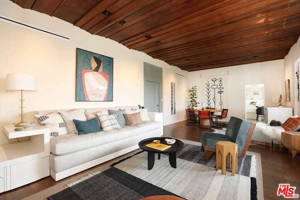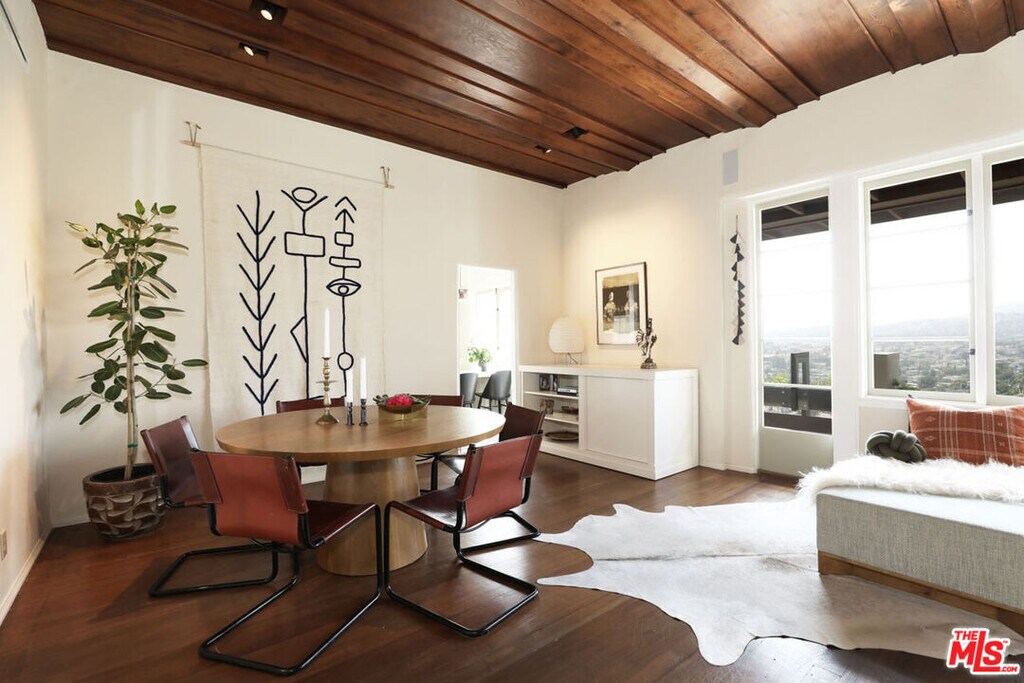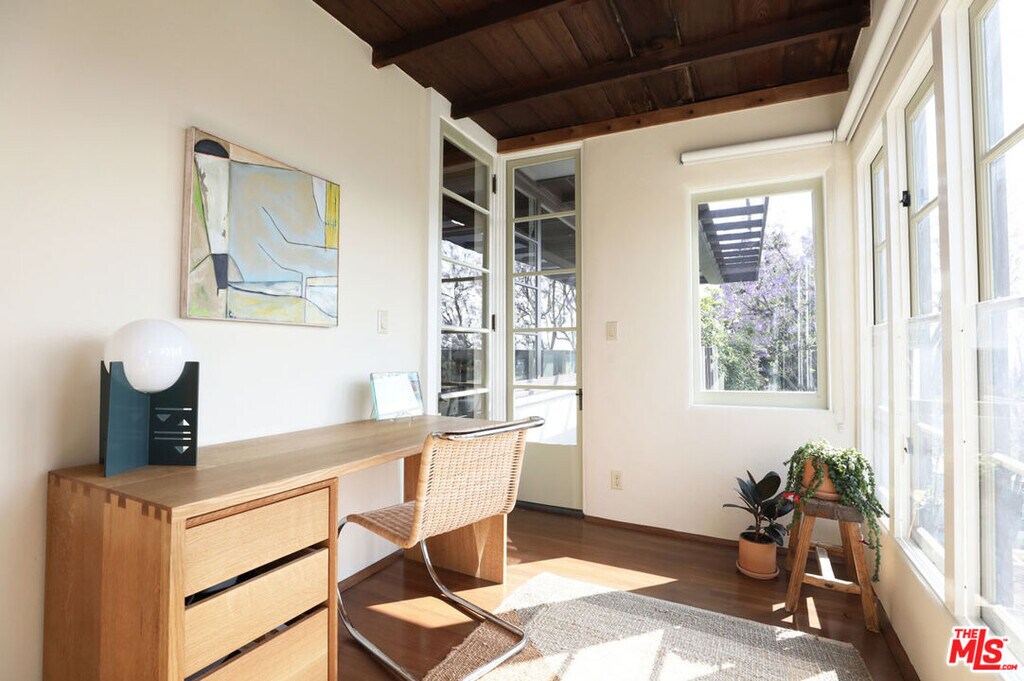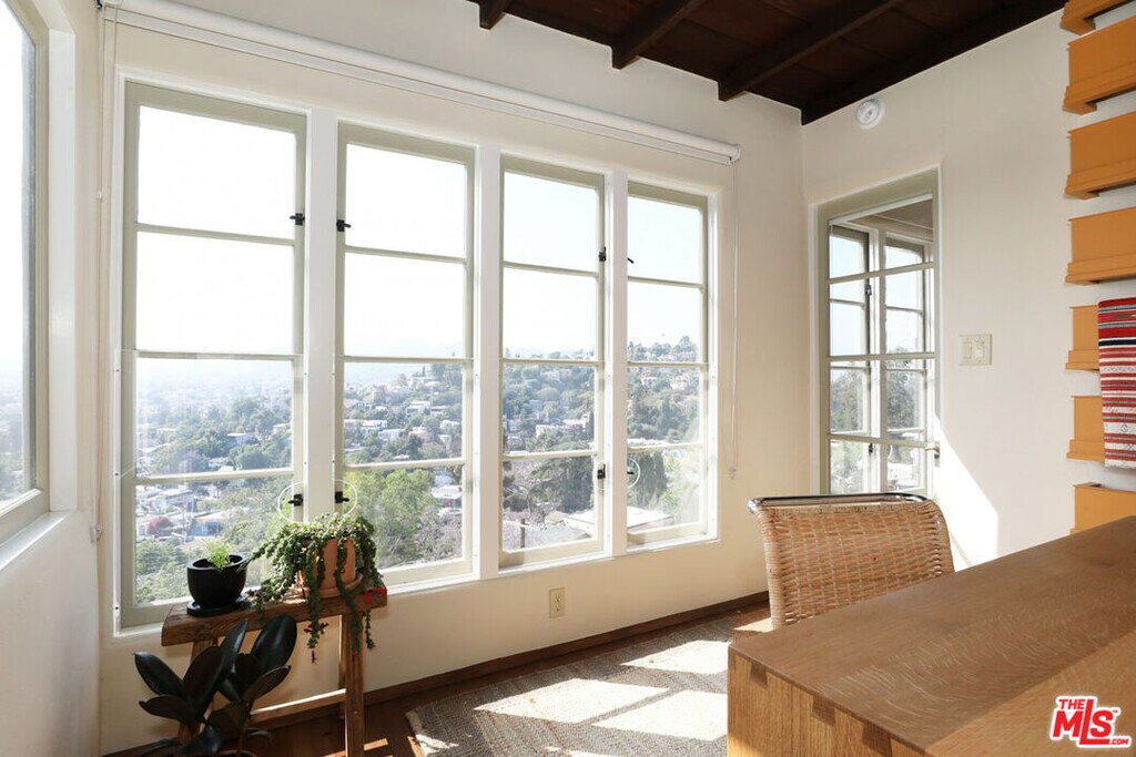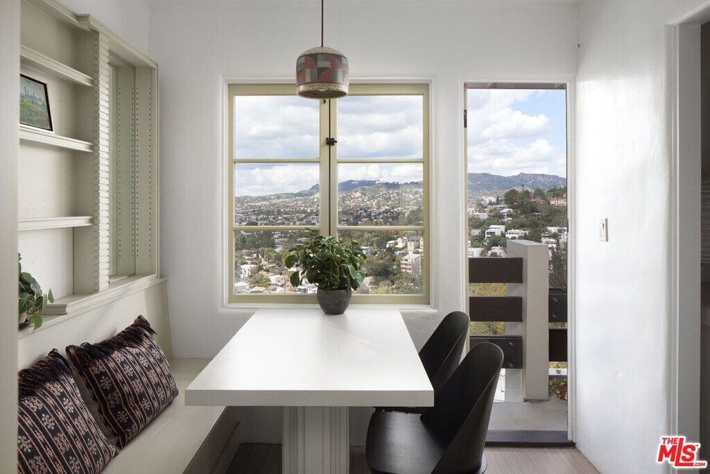 Lease the penthouse owners unit" at Manola Court in Silver Lake, the innovative modernist apartment complex by renowned architect Rudolf Schindler. Available short-term (six months), the fully-furnished space presents exquisite design details and an abundance of built-in woodwork. In the light-filled open layout find living, dining, an office area and updated kitchen with built-in breakfast nook; there is a handy powder room and full suite of appliances including a washer+dryer. Oversized windows offer scenic views of Silver Lake hillsides, the Hollywood Sign, Griffith Observatory and gorgeous nightly sunsets. The 16-unit complex, with landscape design by Terremoto, provides parking for one car. You are within blocks of the Reservoir and Sunset Junction with boundless options for coffee, dining, and the twice-weekly Farmer's Market. Schindler's groundbreaking style is often imitated but has never been surpassed; in this modernist jewel you can reside within architectural history." MLS# 25621517