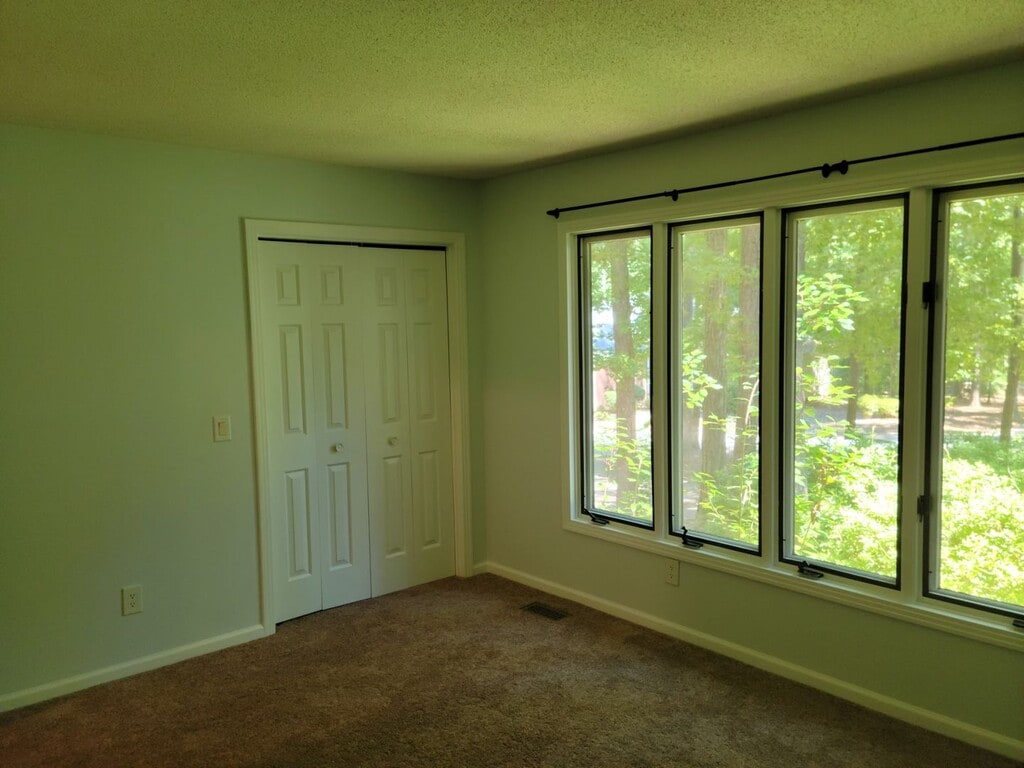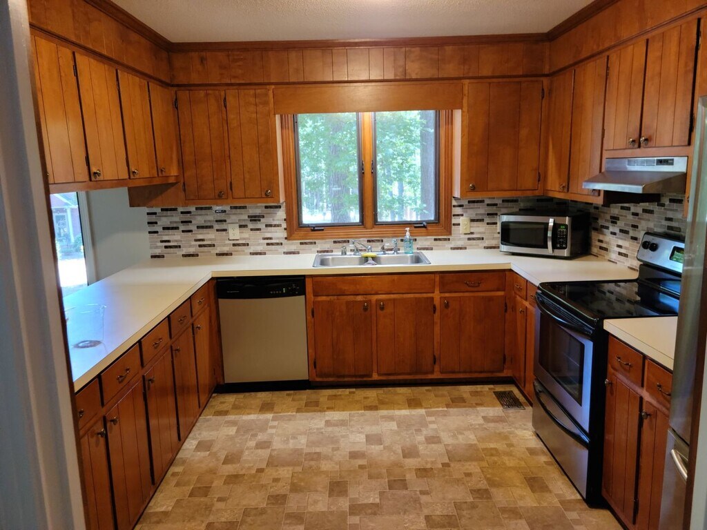 This spacious three bedroom home will be ready for you to move in mid July! Gorgeous exterior with a screened in back deck. Kitchen appliances included. Tons of natural light! Beautiful wooded lot. Two full bathrooms. Text for info!