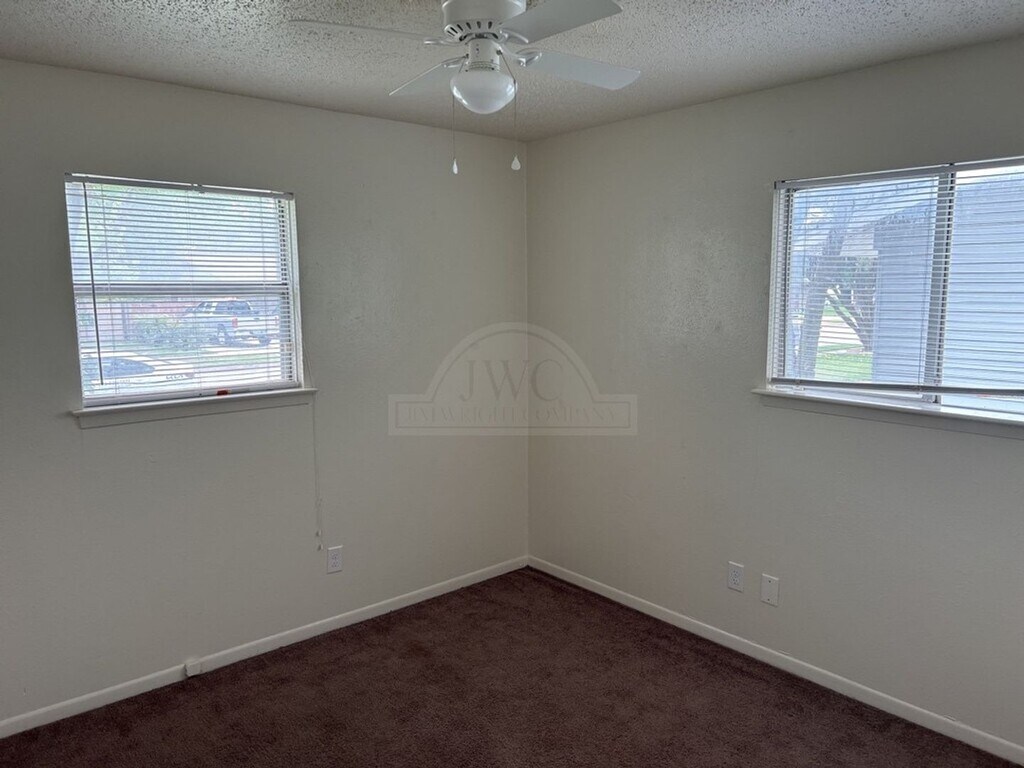 This 3 bedroom, 2 bathroom home has a 1-car garage, fenced yard, ceiling fans, electric range and refrigerator. Approved pets require a paid non-refundable $300 fee per pet. Contact JWC for more information.