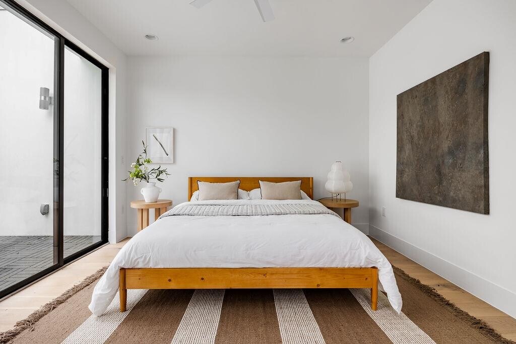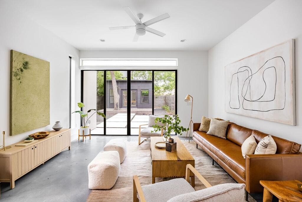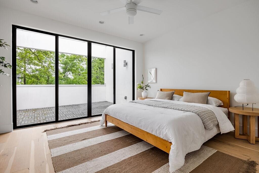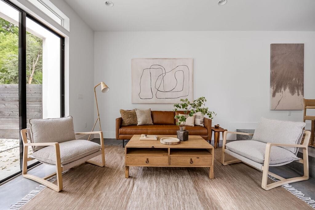 Main House = 1791 + Casita = 135 TOTAL SF = 1926 -- This beautiful home in sought after Crestview has 3 bedrooms with 3 ensuite bathrooms, a detached casita and a private low maintenance backyard perfect for entertaining. As you walk in you will notice tall ceilings and natural light flooding the open living space. With sealed concrete and custom white-oak flooring, this floorplan offers the perfect balance of contemporary style and warmth. The kitchen is open to the living, has stainless appliances and quartz countertops with designer finishes. The full size laundry room also serves as a mud room and features ample storage with custom built-ins and a door to the side yard. One bedroom with en-suite bathroom is located downstairs with the other 2 bedrooms located upstairs. The primary bedroom features a large covered porch to enjoy your morning coffee! In addition to the main living areas, the house also has a detached 135 sqft air conditioned and permitted casita that is perfect for those who work from home or need a quiet area to read, study or relax. The house is ideal for entertaining guests, with multiple sliding glass doors that open up to a private, low maintenance backyard perfect for hosting. The home is conveniently located with easy access to the Domain and Downtown Austin and walking distance to Brentwood Park, minutes to the greenbelt for hiking and biking, and an easy commute to the airport. Don't miss this opportunity to own a beautiful modern home in one of Austin's most desirable and convenient neighborhoods! MLS ID 8733292
