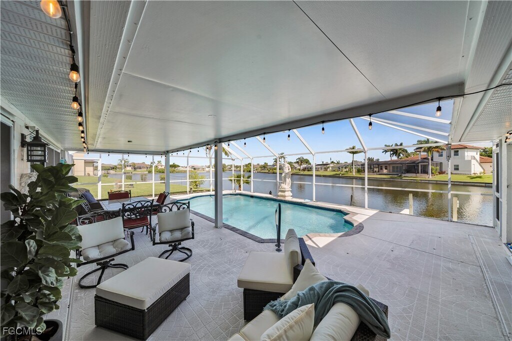 Lakefront Single-Family Home with Pool and Canal Access – Available Through December 31,2026 Spacious 4-bedroom,3-bathroom single-family residence situated on an oversized half-acre,four-lot parcel in Cape Coral. This lakefront property also offers canal access and a private boat dock. The home features approximately 2,700 square feet of total living space,including a Florida room/lanai that opens to the screened-in pool area. A full bathroom is accessible from the lanai,providing convenient access from the pool. Property features include: Screened-in swimming pool Private dock with canal access Lakefront lot Florida room/lanai Newer roof (2020) Updated A/C system (2022) No flood insurance required Fully paid assessments Interior offers a functional layout with spacious bedrooms and ample natural light. The home is offered partially furnished; furnishings are negotiable. Located in an established neighborhood with convenient access to shopping,dining,schools,and local amenities. Lease available through December 31,2026.