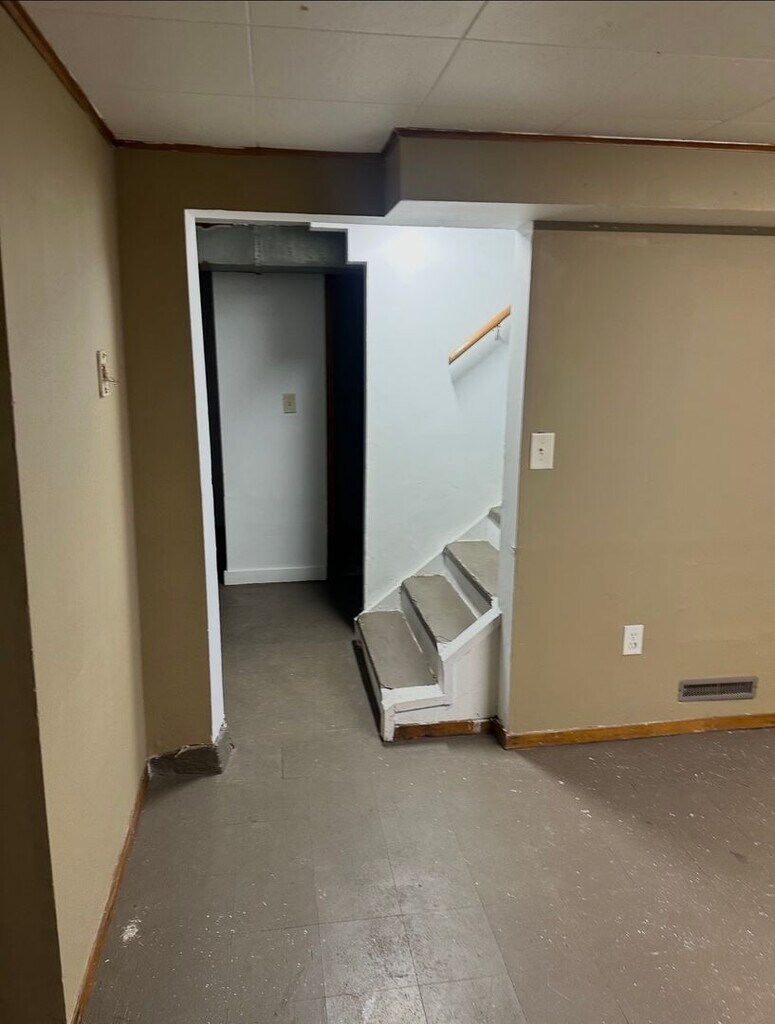 2 Bed- 1 Bath -- Includes stove and refrigerator, partially finished basement with Family room and office space. Detached oversized single garage with additional shed in the large back yard. **NO PETS** Tenant pays all utilities