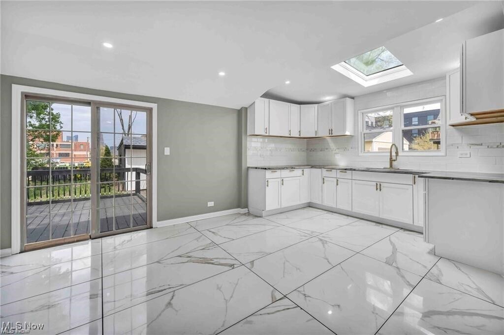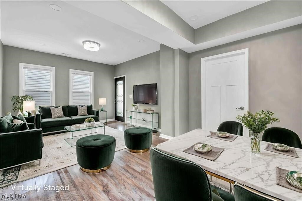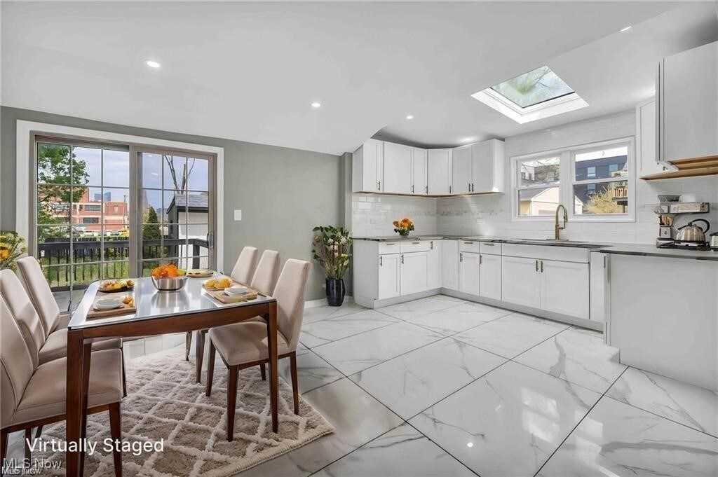 This beautifully renovated colonial in Tremont blends modern touches with unbeatable downtown views,visible from the backyard and the expansive primary suite. Step inside to find a spacious living room with luxury vinyl flooring that continues into a generous dining area—ideal for entertaining. Off the dining room,a massive first-floor bathroom impresses with dual sinks,a smart mirror,porcelain floors,and a tiled shower/tub combo. The updated kitchen includes granite countertops,a skylight,tiled backsplash,and access to the deck through sliding glass doors. A sizable first-floor bedroom offers ample closet space and flexibility for guests or a home office. Upstairs,you'll find three large bedrooms,including the show-stopping primary suite with a panoramic 60” window and en-suite bath featuring sleek porcelain finishes,a glass-enclosed shower,and smart tech. Recent upgrades include a high-efficiency furnace,A/C,hot water tank,and stylish lighting throughout.