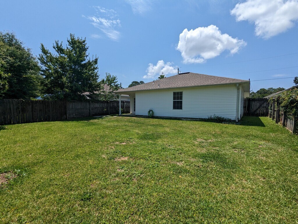 Conveniently Located Between Hurlburt Field & Eglin AFB!Flooring, paint, light fixtures & roof are like new- only two years old. Spacious living room with high ceilings. Kitchen features a breakfast bar, white appliances, lots of countertop space, & separate pantry. The master bedroom includes a walk-in closet & en-suite bathroom with double sinks. Great-sized backyard with a privacy fence and a covered patio** Dogs Upon Approval- No Cats**BONUS AMENITY INCLUDED: A portion of rent paid will be used to have HVAC filters delivered to your home approximately every 30 days under the Utility & Maintenance Reduction Program to help you save 5-15% your heating and cooling bill as well as create a clean healthy living environment.*A $50 administration fee will be charged at move-in