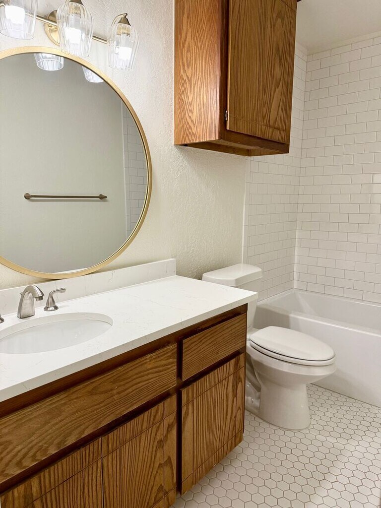 **For Immediate Lease** Fully remodeled 2 bed, 2 bath, 2 car garage! Fantastic area on a quiet street. Quartz counter tops though-out, brushed gold bathroom accents, new double-hung windows and luxury vinyl plank flooring all for ease of cleaning! sliding glass door off the master takes you out to a cute little yard with your own private patio!