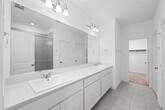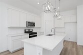 Welcome to this timeless Ashton Woods residence—where style meets comfort. This beautifully upgraded 4-bedroom, 2-bathroom home offers modern elegance and everyday convenience. Step inside to soaring 10-foot ceilings and luxury vinyl plank flooring that runs throughout the main living areas. The gourmet kitchen features crisp white 42-inch shaker cabinets, quartz countertops, Energy Star-rated stainless steel gas appliances, and sleek Moen faucets—perfect for both everyday use and entertaining. The open-concept living and dining areas create an ideal space for gatherings, while an abundance of natural light fills the home, creating a bright and inviting atmosphere. The private primary suite is thoughtfully tucked away for added privacy. Additional highlights include a covered patio, a tankless water heater, and a full sprinkler system for low-maintenance outdoor care. Brand-new carpet was installed in July 2025, making this home move-in ready.