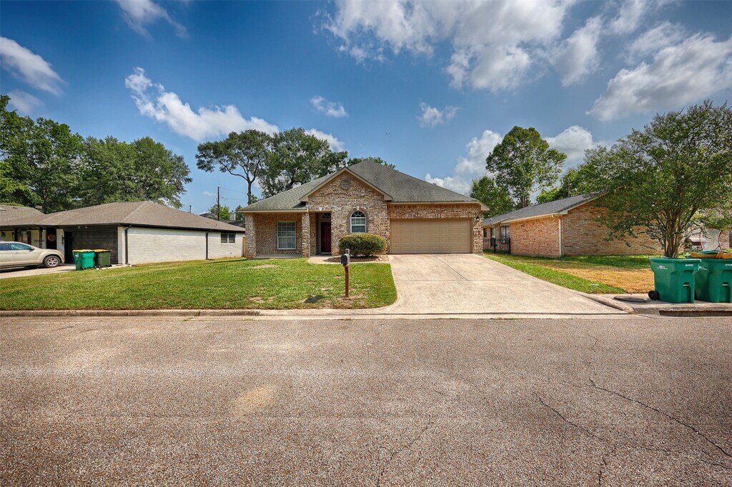 Never flooded. Traditional brick home on a large lot,new carpet,total new paint (interior and exterior) 3 bedrooms and a study,2.5 bathrooms,double sinks and walk in closet in the master,master bedroom is on the first floor,all other rooms are up,covered balcony off of the study,breakfast nook in the kitchen,breakfast bar,gas range,high ceilings in the living room,gaslog fireplace,covered patio,fenced back yard,bedroom dimensions are approximate. MLS# 35420819