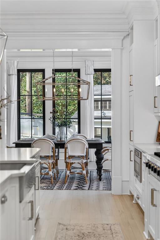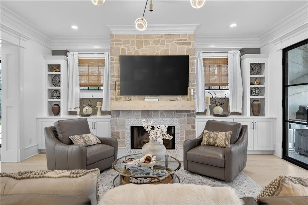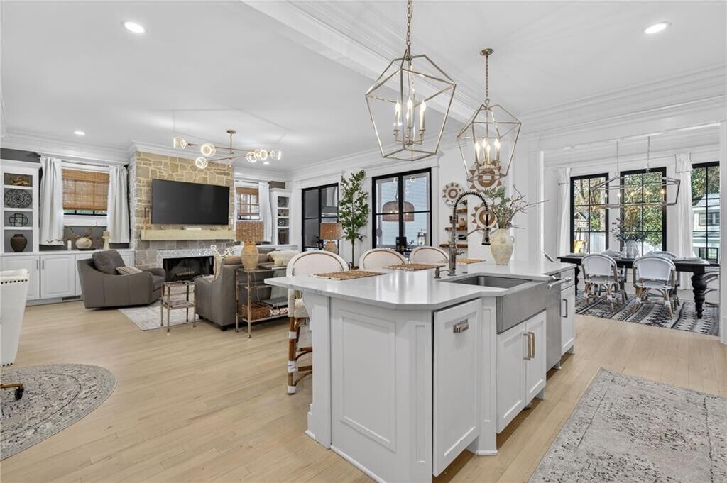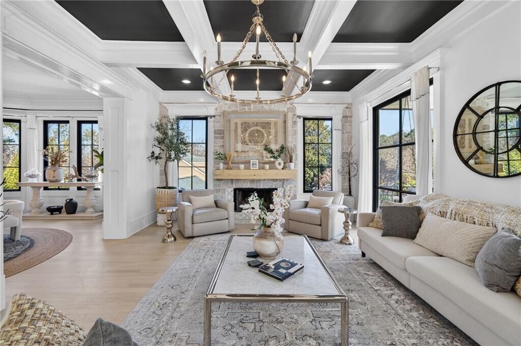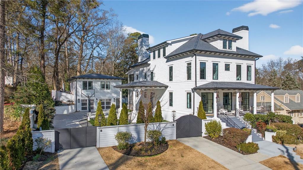 Set high above the street and wrapped in exceptional privacy,this architecturally striking Morningside residence delivers a rare blend of estate-level seclusion and premier intown living. Recently elevated with a new slate roof,custom steel windows front and back,and a dramatic steel pivot front door with matching steel rear doors,the home makes an immediate statement of timeless sophistication and modern craftsmanship. Spanning four beautifully finished levels,the property also features a detached garage crowned by a full in-law/au pair suite and a gated parking pad accommodating multiple vehicles,offering both flexibility and convenience. A wide,covered front porch invites relaxed outdoor living and sets the tone for what lies within. The foyer opens to high ceilings,intricate moldings,and gleaming hardwood floors,flowing effortlessly into an open yet elegant main level. The formal living room is richly appointed with coffered ceilings,a fireplace,and dual French doors,seamlessly connecting to a banquet-sized dining room ideal for hosting unforgettable gatherings. A butler's pantry leads to the showstopping chef's kitchen,anchored by an oversized stone island and farm sink,and outfitted with professional-grade Dacor,Sub-Zero,and Viking appliances,plus a Miele built-in coffee maker for caf -level mornings at home. A walk-in pantry,built-in desk area,and open sightlines to the family room make this space both stunning and supremely functional. The family room offers another fireplace,custom built-ins,and French doors opening to a covered outdoor living room with privacy curtains,creating a serene retreat for year-round enjoyment. Adjacent,the sunlit breakfast room wrapped in wall-to-wall windows overlooks the private backyard and lush surroundings. Upstairs,the oversized primary suite is a true sanctuary,featuring its own fireplace,generous sitting room,morning bar,private balcony,spa-inspired bath,and custom walk-in closet. Three additional bedrooms and two full baths complete this level with comfort and style. The finished terrace level expands the home's versatility with a media room,multiple living spaces,kitchenette,bedroom with private entry,and a full bath,ideal for guests or extended family. Across the drive,the detached garage's upper-level suite offers complete independence with a full kitchen,living area,and private laundry. This is privacy without compromise,moments from Morningside's boutique shopping,acclaimed restaurants,neighborhood parks,hiking trails,and the beloved Morningside Nature Trail,all within the award-winning Morningside Elementary School District. Offered furnished or unfurnished,this exceptional home delivers elevated,move-in-ready living at its finest. MLS ID 7632475
