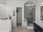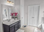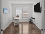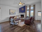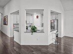 A grand entry to a one-story house with a high ceiling, three bedrooms & two full bathrooms, an office, a formal dining room, a beautiful kitchen with a granite countertop, and a large family room. The home offers a split floor plan for bedrooms, which has the two bedrooms with full bath on the entry side of the home and the primary bedroom and primary bathroom to the rear side of the home.