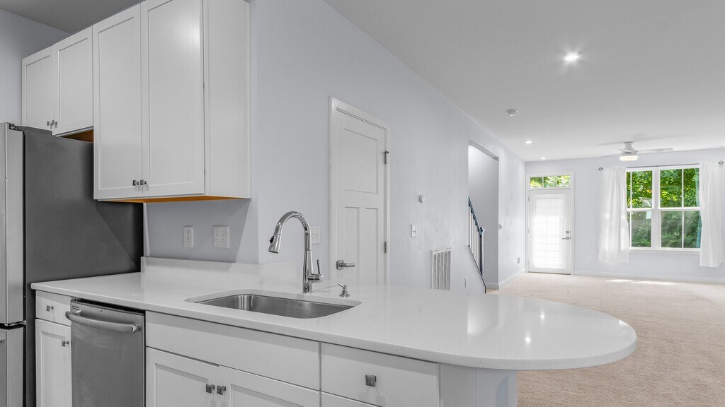 Luxury living awaits! This 3 bedroom 2.5 bath end unit townhouse has it all! Open floorplan downstairs. Kitchen features stainless steel appliances, quartz counter tops, soft close drawers, and plenty of cabinets. Downstairs primary bedroom offers a large walk in closet, and large en suite bathroom. Two bedrooms and additional full bath upstairs. Laundry room downstairs with washer and dryer included. Full size 2 car garage offers plenty of storage as well. Lots of windows throughout the home offers lots of natural light. Condo amenities include a private beach, pool, boat slips, playgrounds, exercise room, clubhouse, and kayak ramps in a quiet community. Schedule your showing today!
