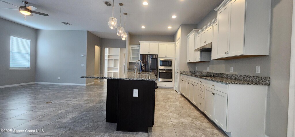 This beautifully maintained 5-bedroom/4.5-bathroom residence offers the perfect blend of space,comfort,and convenience. Designed with spacious living and entertaining in mind,this home has everything you need and more. The open-concept kitchen features elegant granite countertops,a large island with sink,and stainless steel appliances making it the ideal spot for casual breakfasts or lively gatherings. Flowing seamlessly into the dining and living areas,the main floor creates a spacious,inviting atmosphere for everyday living and special occasions alike. A convenient first-floor bedroom with a full bath provides flexibility for guests or multi-generational living. Upstairs,the primary suite includes an enormous walk-in shower with rainfall shower head and separate wall shower head,dual sinks,and a generous walk-in closet . Two bedrooms share a Jack-and-Jill bathroom,and there is a third guest bedroom and full bathroom upstairs. A versatile bonus area is perfect for a home office,play area,or media space. The upstairs laundry room is spacious and has built-in racks to hang items. The living room looks out to the spacious covered patio and the expansive fenced back yard. There is wide open space for play and entertainment,and the back of the yard has various fruit trees to enjoy when the season is right. Community amenities include a pool,playground,and walking trails,nearby. Plus,you'll love the convenient location just minutes from Lake Nona's Medical City,shopping and dining at The Loop,major highways,theme parks,golf,and Orlando International Airport. Rent as soon as possible and get the remainder of the month of October rent free! So,schedule your showing today!