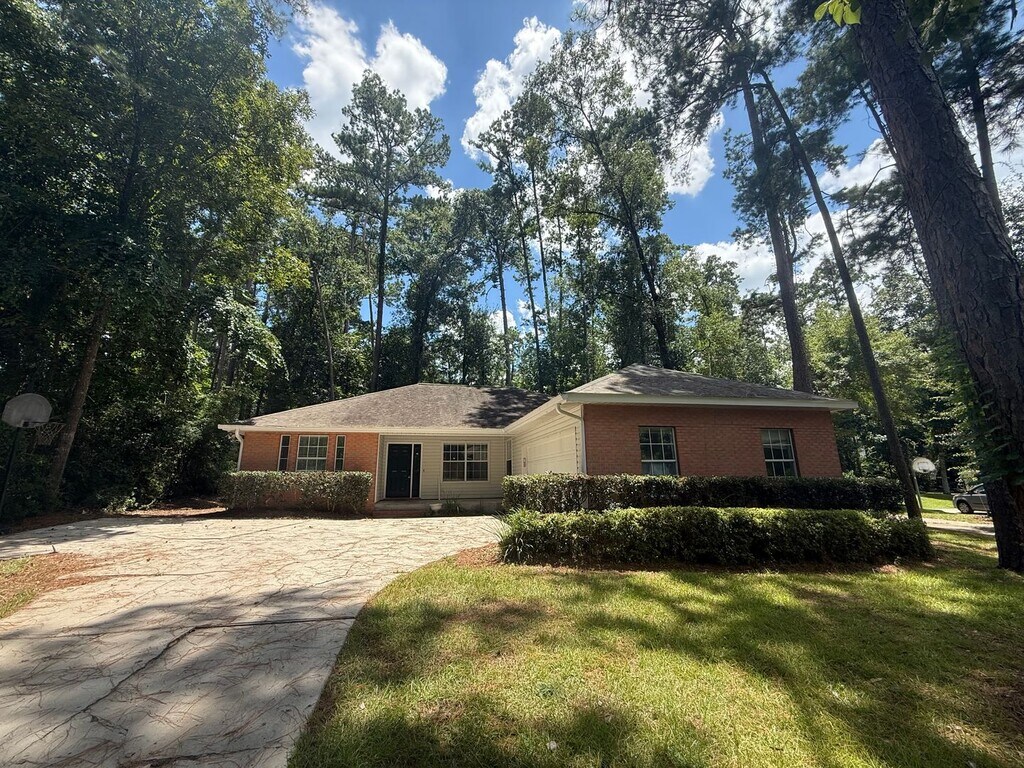 Welcome to 1813 Log Ridge Trail in Tallahassee, FL! This charming 4 bedroom, 2 bathroom home is located in the sought-after NE Tallahassee area, known for its top-rated school district. The house features a 2 car garage, perfect for parking and storage. Cozy up by the fireplace in the spacious living room with vaulted ceilings. All freshly painted and bright. The eat-in kitchen flows seamlessly to the nearby dining area. Home includes brand new wood floors throughout the living areas and brand-new carpets in the bedrooms.. Enjoy the peaceful surroundings of Killearn Lakes right in your backyard. Don't miss out on this fantastic opportunity to make this house your home!