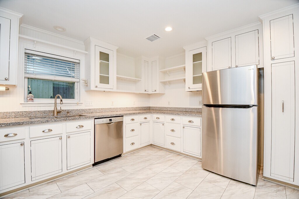Welcome to this charming one-story home exuding elegance and comfort. Nestled behind a welcoming driveway gate and under gorgeous trees,this residence offers both convenience and privacy. Step inside to discover a meticulously designed space boasting high living room ceilings with dramatic exposed wood beams. The heart of this home is its amazing remodeled kitchen featuring exquisite granite counters and high-end stainless steel appliances,including wi-fi enabled gas range,Bosch dishwasher and a refrigerator that’s included. Don’t miss the huge pantry and in-house laundry room. With 3 spacious and inviting bedrooms and 2 well-appointed baths,this home ensures ample space for relaxation and rejuvenation. The generously sized rooms complemented by large walk-in closets provide both comfort and convenience. Enjoy some grilling and chilling in the large,sprawling backyard under the shade of a massive oak tree. Schedule your showing today! MLS# 59579248