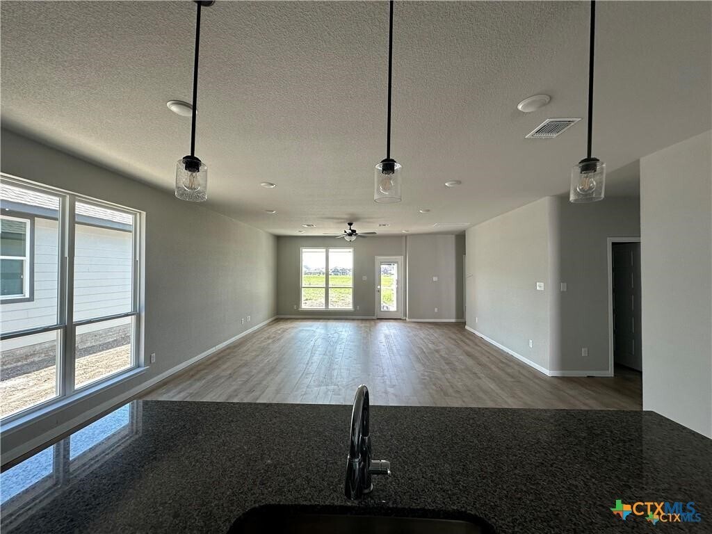 Step into this beautifully designed home and you’re welcomed by a spacious foyer with soaring ceilings that create an immediate sense of openness. The home opens up into a bright,open concept living area where the kitchen,dining,and living room flow seamlessly together,perfect for everyday living or entertaining. This thoughtfully designed three bedroom,two-bath home features large windows in the living room,dining area,and primary bedroom,allowing natural light to fill the space and highlight its inviting atmosphere. The kitchen and bathrooms feature elegant granite countertops,while the primary suite offers a generously sized walk-in closet. Additional upgrades include a decorative tile backsplash,upgraded front door,built-in mini blinds in the rear door,extra LED recessed lighting,and a flexible study space with twin doors,ideal for a home office or quiet workspace.