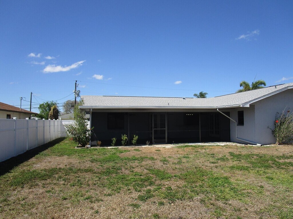 Welcome to this charming 3-bedroom, 2-bathroom single-family home located in the vibrant city of Cape Coral, FL. Covered entry and completely tiled throughout living area. Kitchen is good size, with wood cabinets on both sides, offering lots of cabinet and counter space, pass thru window to lanai. Living room is recessed. Washer and dryer hook-up. Master bedroom has walk-in closet. Master bath has dual vanity and walk-in shower. Guests bedrooms large in size. French doors that lead to a large screened lanai. Fenced back yard, with 6' privacy fence. One of the standout features of this home is the screened lanai at the rear, offering a perfect spot for relaxation or entertaining guests while enjoying the Florida weather .The property also features a two-car garage, providing ample space for your vehicles or additional storage. This home combines comfort, convenience, and style, making it a perfect choice for those seeking a quality living experience in Cape Coral. Currently tenant occupied, no showings of the unit until the tenant vacates. Property Manager: Carolyn Alonso call for showings Pets allowed with approval Rent: $1,695 Application: $60 Security Deposit: $1,695 ****This property is managed by Rossman Realty Property Management who is hired by the owner of the property. Rossman Realty Property Management does not advertise on Craigslist, does not ask you to bank transfer funds and does not have a phone number with an area code out of area. We do require all applicants to apply on our website $60 Non-Refundable Application Fee per adult. No deposits or rent will be asked to be paid until your application is filled out on our website and approved by the property manager/ owner of the property.****