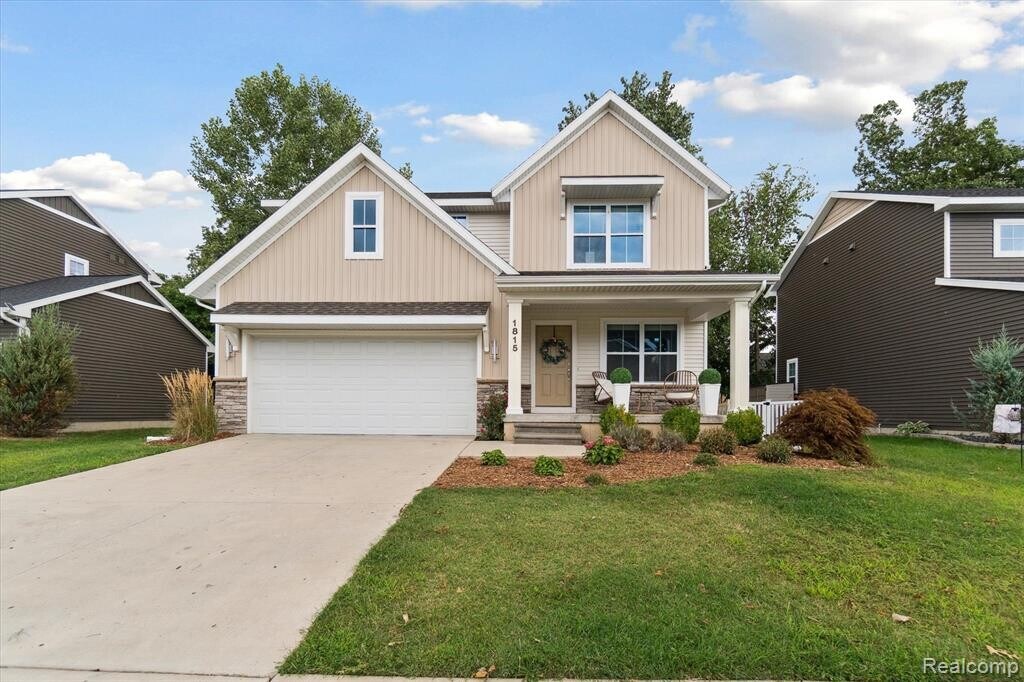 Welcome to 1815 Bainsbridge St, Howell—a brand new Mayberry-built home in the highly desirable Town Commons neighborhood, part of the award-winning Howell Public Schools. Step inside and you’ll immediately notice the bright, open layout designed for both everyday living and entertaining. At the heart of the home is the spacious kitchen, where a large center island invites family and friends to gather. Granite countertops, stainless steel appliances, and laminate plank flooring add a modern, upscale touch that makes cooking feel like a joy, not a chore. Flow seamlessly into the inviting living and dining areas, where natural light pours in and creates a warm, welcoming atmosphere. Upstairs, you’ll find roomy bedrooms with generous closet space. The owner’s suite is a retreat of its own, complete with a private bath featuring double sinks and a walk-in closet you’ll fall in love with. Practical details make daily life even easier—like the second-floor laundry, a two-car garage, and an unfinished basement offering plenty of storage or future potential. Outside your front door, you’re just minutes from downtown Howell, where you’ll enjoy charming shops, restaurants, and a lively farmers market. With nearby parks and easy access to amenities, this location blends convenience with community charm. Dogs under 50 lbs are welcome, making this the perfect place to bring your four-legged friend. This isn’t just a rental—it’s a chance to live in a beautiful new home in one of Howell’s most sought-after neighborhoods. Schedule your showing today and see why 1815 Bainsbridge St is the home you’ve been waiting for.