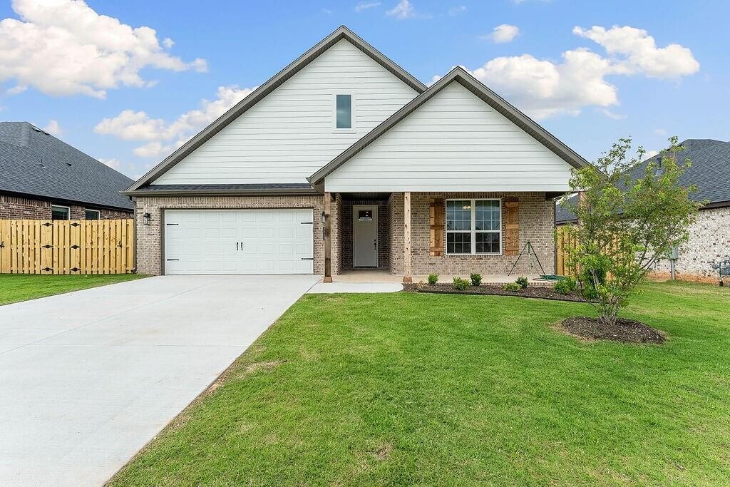Pea Ridge welcomes you to its rapidly growing community. The Yorktown subdivision places you at the heart of it all, offering close proximity to schools, parks, and beautiful scenic views.This lot showcases the Cardinal Plan, where you're welcomed by LVP flooring and bright, airy touches that bring the home to life. All bedrooms are conveniently located on one side of the house, with two bedrooms and a bathroom at the front, while the primary suite is tucked at the back, next to the laundry room and two extra storage spaces. The kitchen, living, and dining areas flow seamlessly together, with the kitchen offering ample storage, including a walk-in shelved pantry. Enjoy outdoor living with both covered front and back patios. MLS# 1318545