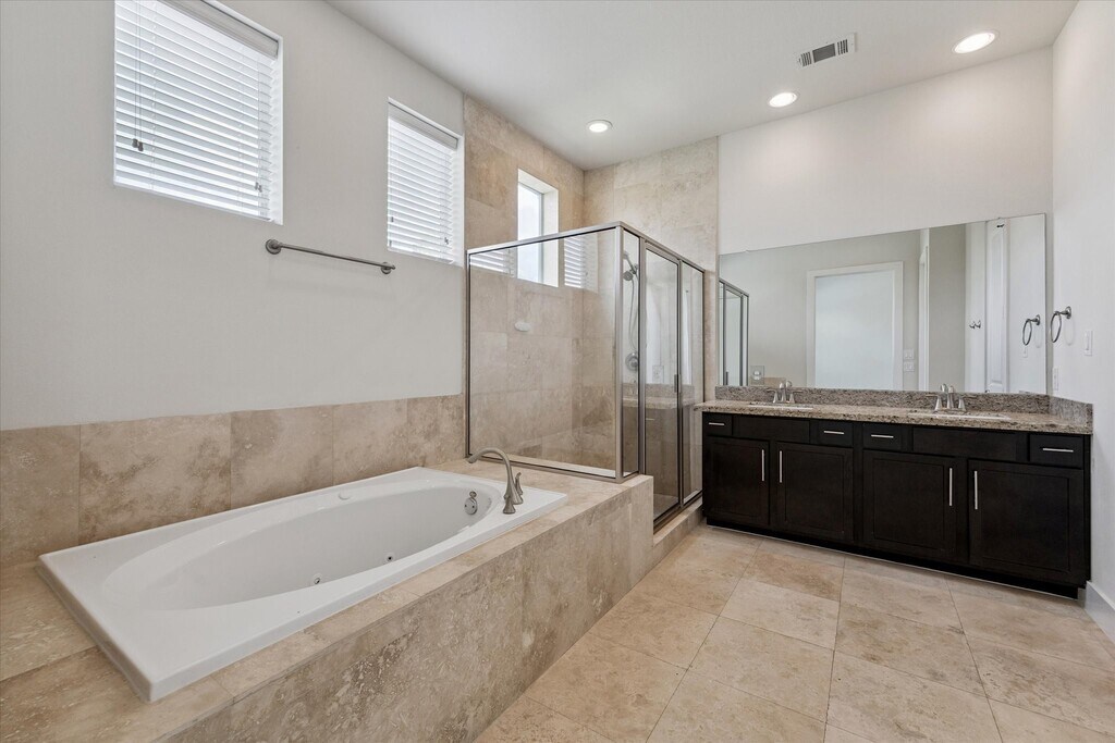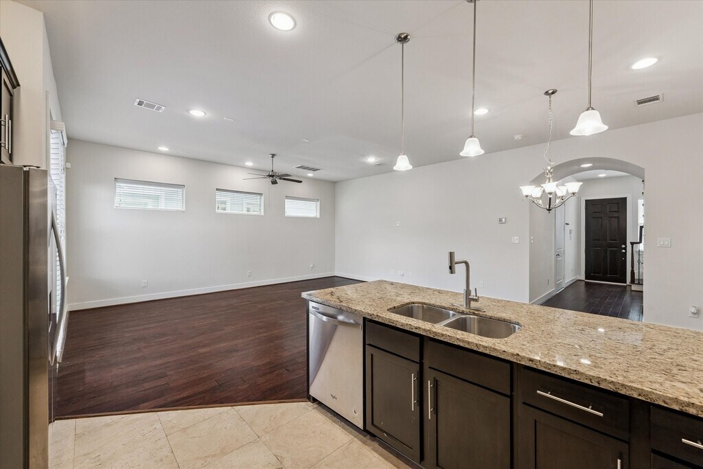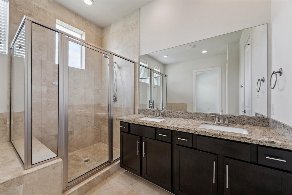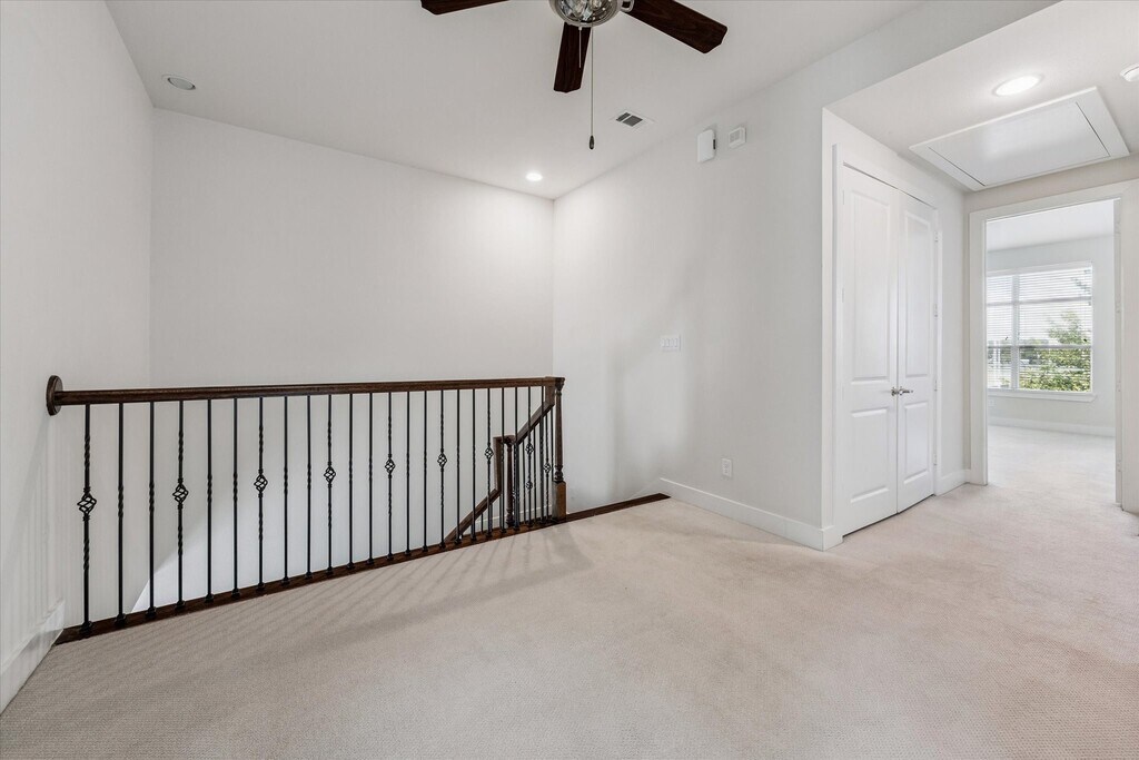 Charming 3-bedroom,3.5-bath residence located in a gated Spring Branch community,only a short drive to City Centre,the Galleria,Memorial Park,and major roadways including I-10,Beltway 8,and Hwy 290. Designed with first-floor living,this two-story home highlights soaring ceilings,an open flow,rich wood flooring,and generous natural light. Every bedroom is complete with its own private bath and walk-in closet. The kitchen showcases ample counter space and a 5-burner gas cooktop—an excellent setup for gatherings. Upstairs,you’ll find a versatile loft-style area perfect for an office or media room,along with a laundry space conveniently positioned near the bedrooms. The primary retreat offers dual walk-in closets and a luxurious spa-inspired bath. Outdoor features include a covered patio,yard space,and evening lighting. Appliances such as washer,dryer,and refrigerator remain with the home. MLS# 52943903