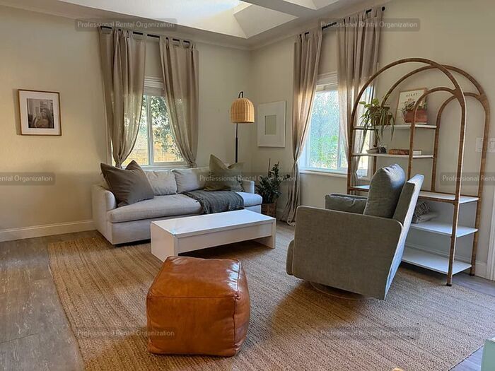 Welcome to this charming 2-bedroom, 1-bathroom single level home located in the heart of Calistoga, CA. This home boasts a bright open floor plan, enhanced by modern stainless steel appliances, including a refrigerator, built-in microwave, and dishwasher. The property also features a central heater and air system, ensuring comfort in all seasons. The second bedroom is rather small room, does have a closet but is better utilized as a den, or office, providing flexibility to suit your needs. The home comes partially or without furniture, but includes a picture frame flat panel TV and patio furniture. The property offers off-street parking and is just minutes from downtown, making it conveniently located for all your needs. The home also includes a washer-dryer, and the enclosed yards feature a pergola in the front yard, creating a private setting for you to enjoy. Landscaping and trash services are included, adding to the ease of living. The home is also equipped with a Nest lock and heating system for added security and efficiency. Plus, it's just a short walk from Logvi Park. Experience the best of Calistoga living in this beautiful cottage home. Self-viewings can be scheduled at Applications online only at Agent DRE #01396316 This property allows self guided viewing without an appointment. Contact for details.