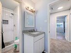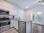 Property Id: 2314695 Welcome to this stylish and centrally located two-story townhome offering comfort, convenience, and thoughtful upgrades throughout. Located in the desirable North Park Townhomes subdivision, this 2-bedroom, 2.5-bath home features high ceilings, modern finishes, and a smart layout perfect for everyday living and entertaining. Step inside to discover modern laminate flooring and a cozy fireplace anchoring the living room. The updated kitchen boasts white cabinetry, sleek granite countertops, and a clean, modern aesthetic that flows into the dining area and living room. Just off the kitchen, you'll find a convenient indoor utility room and a guest half-bath. Upstairs, enjoy the privacy of two generously sized bedrooms, each with its own en-suite bathroom. One features a stunning floor-to-ceiling tiled shower with a pebble-stone floor, creating a spa-like retreat. A small open office nook upstairs offers a perfect work-from-home setup or reading space. Additional highlights include two reserved parking spaces, quaint private patio, neighborhood pool, and community center.