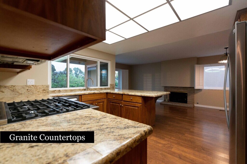 Welcome to 1815 Randall Road, a beautifully maintained home where modern comfort meets timeless charm. Step inside to an inviting living space featuring new luxury vinyl plank flooring and one of two warm gas fireplaces, ideal for entertaining friends or enjoying a cozy night in. Each bedroom is designed with relaxation in mind, showcasing brand-new carpet and elegant, porcelain white shutters that balance natural light and privacy. The two full bathrooms have been completely renovated with white marble vanities and stylish shower and tub enclosures, creating spa-like retreats. At the heart of the home, the kitchen impresses with sleek granite countertops, rich wood cabinetry, and newer appliances, including a gas range and oven less than a year old. The open-concept kitchen seamlessly connects to the living room, making it easy to entertain, stay connected, or simply take in the stunning view. Step outside to beautifully landscaped and low-maintenance yards, professionally maintained weekly by a gardener (included in rent). Hummingbirds are drawn to the vibrant Mexican Bush Sage on the property, bringing charm, delight, and a touch of good luck to your day. Enjoy breathtaking views while being just minutes from Crystal Springs and Laurelwood Shopping Centers, and Highway 92.