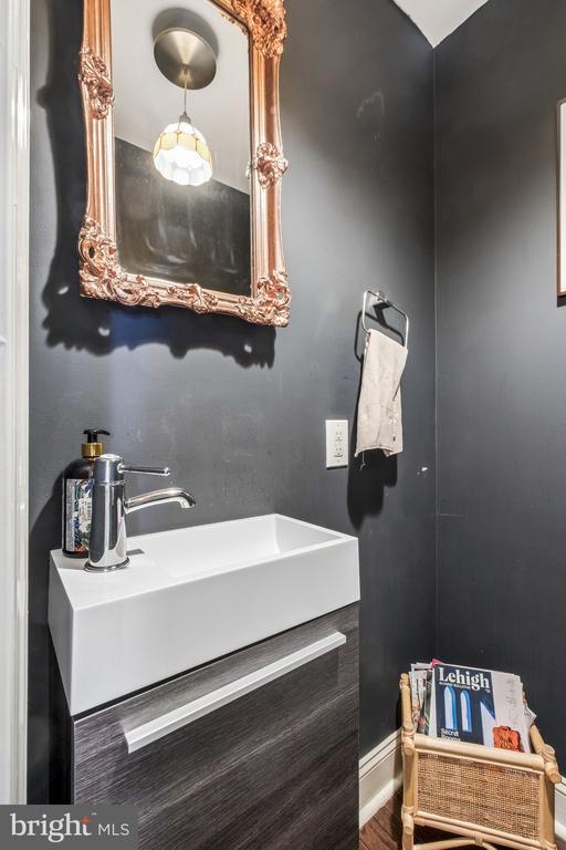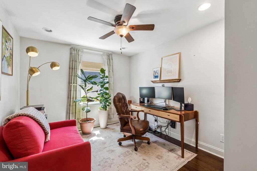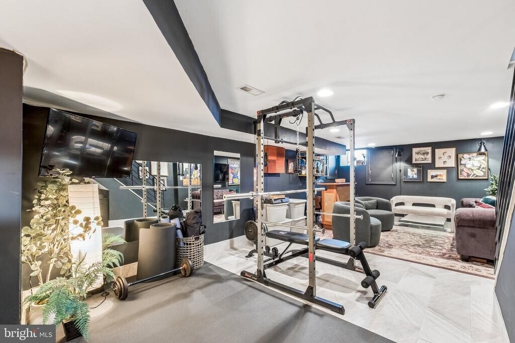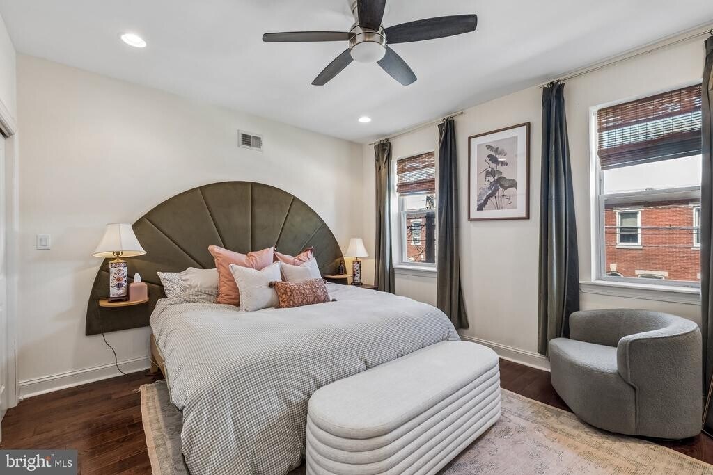 Beautifully renovated home featuring an open-concept layout and modern finishes throughout. Upon entry, you’re welcomed by an exposed brick wall that extends up the staircase, adding character and charm. The main level offers hardwood flooring, recessed lighting, ceiling fans, and a seamless flow between the living and dining areas, complete with wainscoting and a convenient half bath. The kitchen is designed for both everyday living and entertaining, featuring a large island with pendant lighting, granite countertops, white shaker cabinetry, tile backsplash, and stainless steel appliances. Step outside to a private rear patio—perfect for relaxing or hosting. Upstairs, you’ll find three well-sized bedrooms and a full bathroom with double sinks, tile flooring, and a tiled shower. The spacious primary bedroom includes ample closet space. The finished basement provides additional living space along with a separate laundry area and extra storage. Major systems, including HVAC, water heater, and windows, were updated during the renovation. Conveniently located near public transportation, major highways, and a variety of dining options, this home offers both comfort and accessibility.