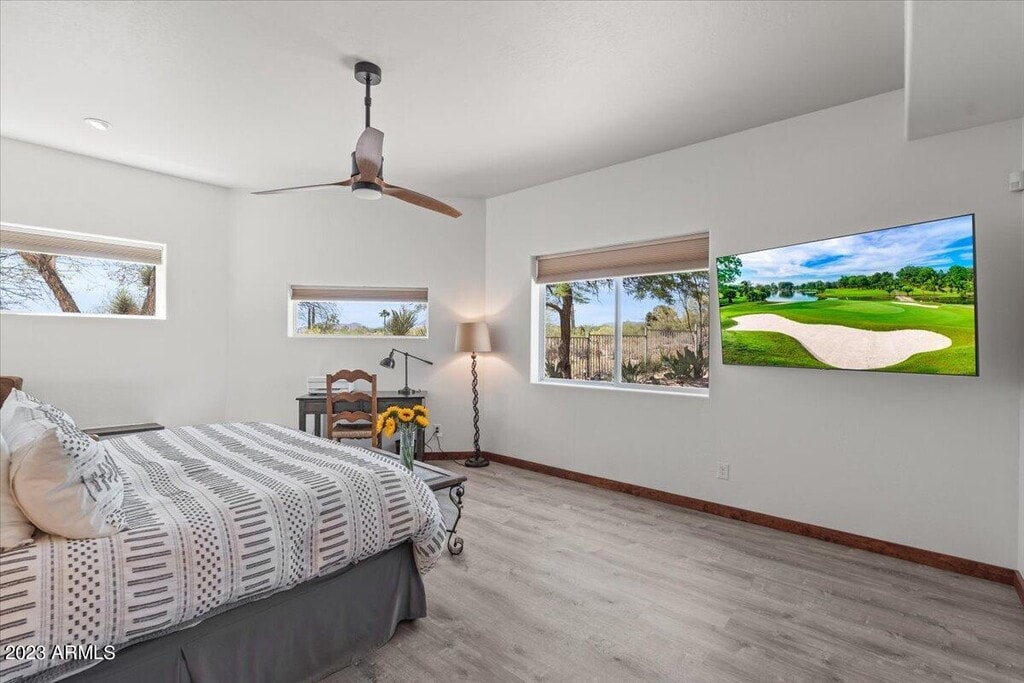 Inviting courtyard welcomes you to this special home in The Boulders & captures the essence of desert living. With 3 bedrooms & 3 baths,a spacious great room open to the oversized kitchen,there is ample space for easy living. An attached separate bonus room offers an additional bedroom,A generous backyard complete with putting green & firepit is perfect for entertaining . 2 community pools available. Just bring your clothes & toothbrush- everything you need is on site!