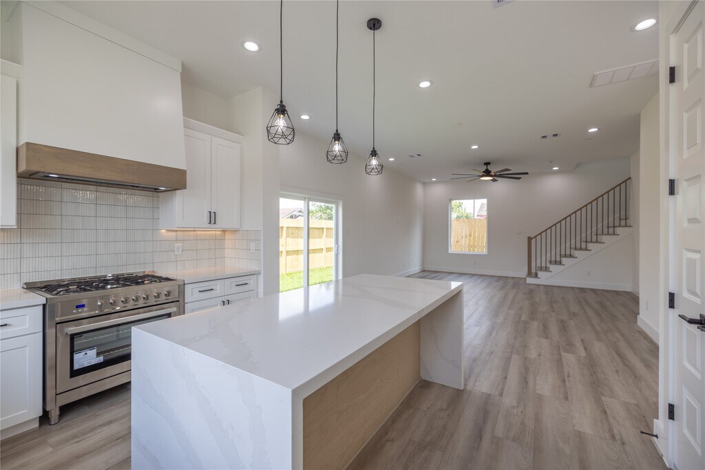 FOR LEASE – Stunning New Construction Home This stunning new-construction home offers a bright,open-concept floor plan with designer finishes throughout. The chef’s kitchen features a large quartz waterfall island,custom cabinetry,farmhouse sink,open wood shelving,under-cabinet lighting,and a premium stainless-steel gas range—perfect for everyday living and entertaining. MLS# 35921373