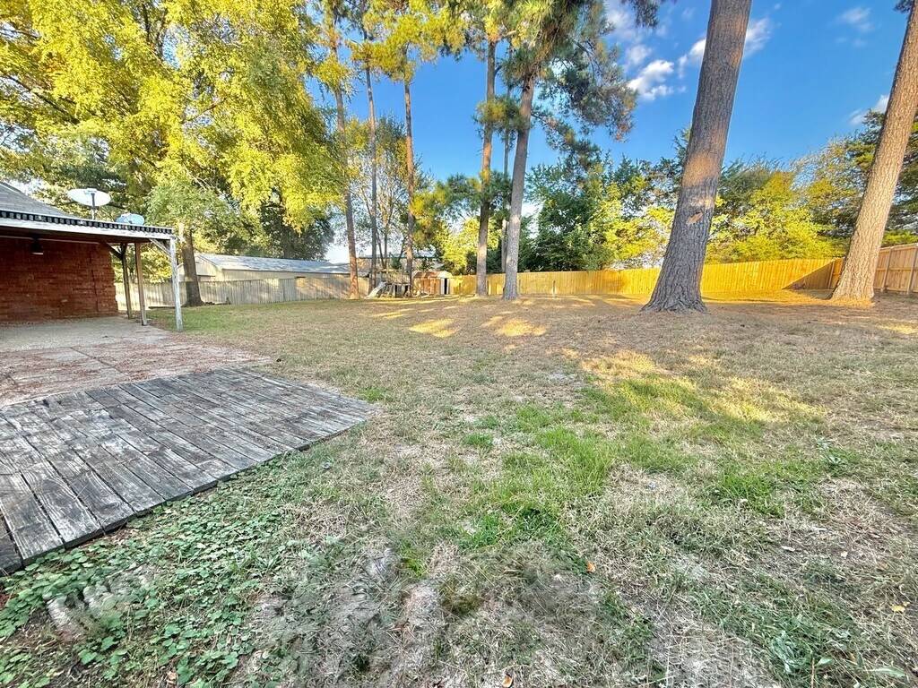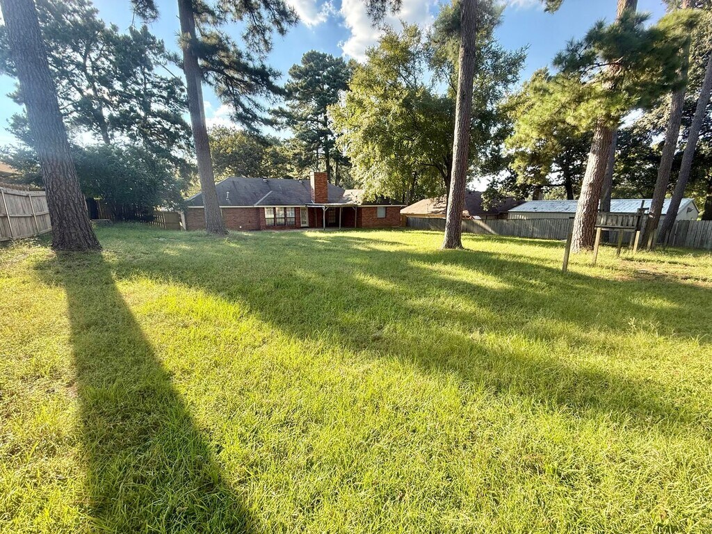 Check out the spacious 3-bed, 2-bath with a HUGE privacy fenced in yard! This home is conveniently located in Flint just off Old Jacksonville Hwy, south of Loop 49 but North of 346. Just far enough to avoid the hustle and bustle of town, but close enough to enjoy all the latest and greatest eating and shopping of Tyler! This home features a spacious living room with a brick fireplace, a kitchen with PLENTY of cabinet space, a breakfast nook, and a separate utility room. There's even a bonus room that could be used as a formal dining room, office, game room, home library, or whatever fits your needs! The primary bedroom features a built in bookshelf, brand new tile flooring, plus an ensuite bathroom with a tub, walk in shower, and two walk in closets. The hall bathroom features two sinks, LOTS of storage space, and it leads into the second bedroom which also has brand new tile. The third bedroom features plenty of natural lighting. Step outside under the covered patio or go out and enjoy that HUGE privacy fenced back yard! This home is pet friendly with some breed restrictions with a one time fee/deposit, no pet rent! Reach out today to schedule your private tour!!