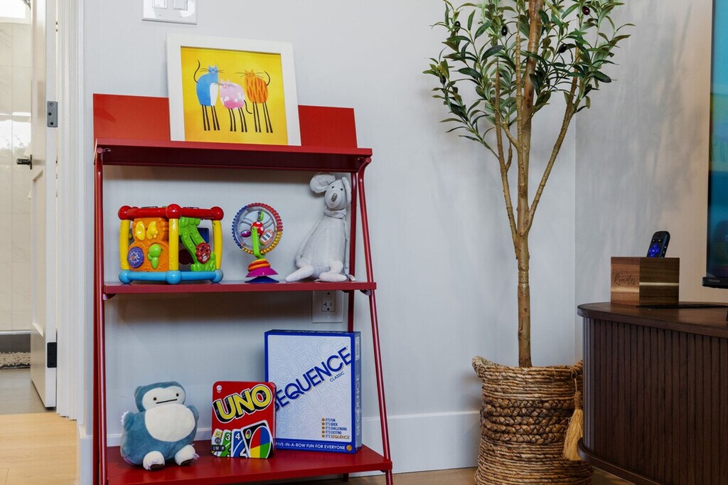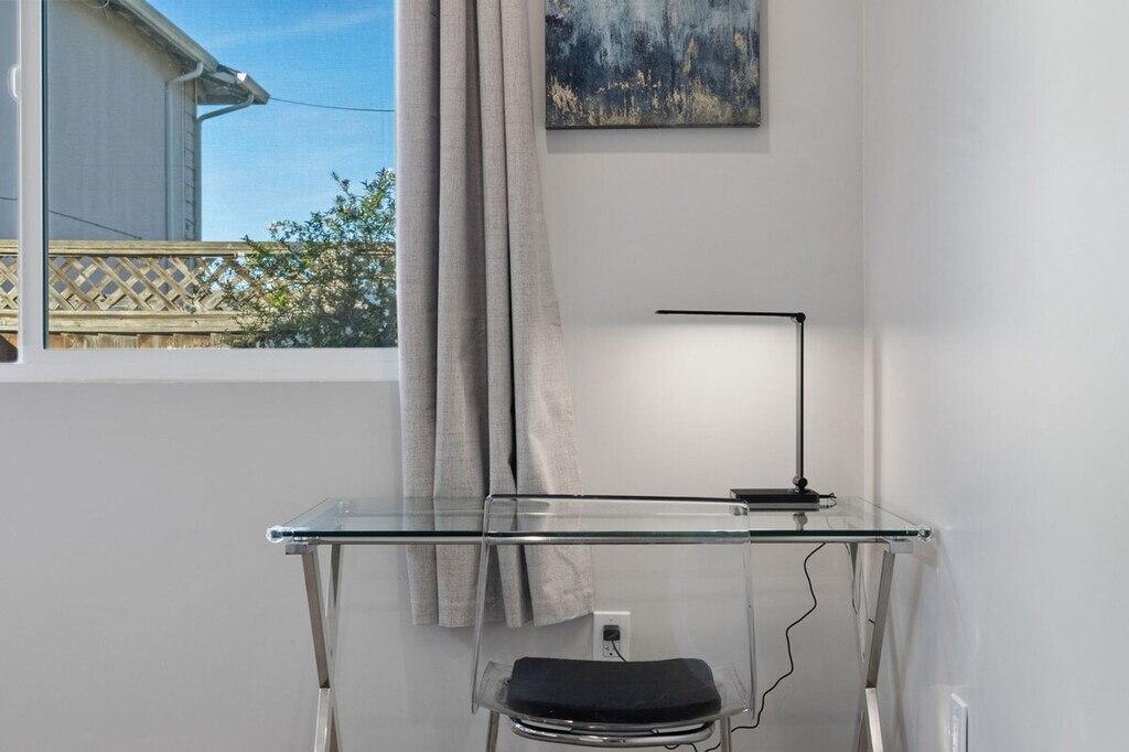 Feel at home in this new-built luxury home in Santa Clara with a bright, open-concept living space. This home features a modern, fully equipped kitchen with top appliances including a toaster, coffee/tea maker, blender, rice cooker, and kettle, as well as brand new cookware and utensils. Enjoy the spacious living area with a 7-seater sofa and a 55" smart TV, along with a great selection of board games for all ages. For restful nights, the bedrooms offer luxurious king-size beds with plush pillows, blackout curtains, and white noise machines. An in-unit washer and dryer are included for your convenience. The large bathrooms are stocked with premium shampoo, body wash, hand soap, and a hair dryer. This home is pet-friendly. A pack-n-play crib, high chair, and toys are available for families with babies and toddlers. Free parking is available. Centrally located in Silicon Valley, this home is a 5-minute walk to shops and restaurants on El Camino Real and popular eateries, and 10 minutes to Santana Row, Levi's Stadium, and Targets. It's also just 10 minutes from Apple Campus (2.5 miles), Google (10 miles), Intel (3 miles), and Nvidia (2 miles), with close proximity to major commute routes such as San Tomas Expressway, Saratoga Ave, and Homestead Rd. No parties or smoking are allowed inside the house or any other violation of house rules, and a $500 fee will be strictly enforced if any rules are broken. There is another private residence on the same lot. This property is a guesthouse, but with its own private walkway and entry. Security cameras are installed on the exterior of the home and the driveway. Each bedroom features a dedicated work desk, chair, and closet, along with ultra-fast, reliable Wi-Fi throughout the home. [SI]