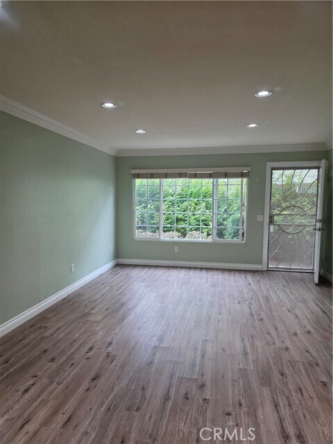 This is a spacious unit located in ground floor. Recessed lighting and crown moldings enhance the warm and inviting atmosphere throughout the main living spaces. U-shaped kitchen cabinet provide ample storage. Wood-look plank flooring throughout, travertine tiles in bathrooms and kitchen floor, granite kitchen countertop, marble vanities and central air. Master bedroom has direct access to private backyard. Costco, Walmart, Target, Asian markets, Banks, gyms, restaurants and entrance to FWY, all are in either walking distance or one mile radius. Private backyard alone is about 390 SQ with a storage shed. Prefer 700+ credit score all applicants. MLS# TR25232652
