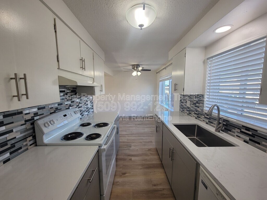 *SECURITY DEPOSIT - $1,000* COMPLETELY REMODELED, SPACIOUS two-bedroom, one-bath apartment in a partially gated community. Upon entering the secured, keyless front door, you are welcomed into an oversized living room with ample living space. The airy and bright living room flows into a modern dining area and a gorgeous kitchen showcasing beautiful quartz countertops, a stylish backsplash, and a blend of new and updated appliances. The quartz design continues into the newly remodeled bathroom, featuring a large shower/tub combo and polished vanity. The two updated bedrooms include mirrored closet doors, new blinds, and energy-efficient ceiling fans for added comfort. Just outside the bedrooms, you will find two large closets providing additional storage space. For added convenience, the unit includes a washer and dryer along with ample utility shelving. Additional features include security lights in the parking lot for extra safety, a special area for dogs to use the restroom, two assigned off-street parking spaces, and on-site storage units available for $15 per month. The community is conveniently located close to freeway access, shopping, and Columbia Basin College, making commuting around the Tri-Cities area easy. ? Additional Details: Pet Policy: Pets may be considered with owner approval. All pets must be screened through and applicable pet fees and rent will apply. No aggressive breeds permitted. Tenants are responsible for electricity Water/Sewer and garbage are included Resident Benefits Package: All RPM Tri-Cities residents are automatically enrolled in our Resident Benefits Package for $35/month. To apply please go to and click on the "Search Rentals" button where all listings are posted. Professionally managed by Real Property Management Tri-Cities. For inquiries or to schedule a showing, please call . AMENITIES: * Pets Allowed * Newly remodeled * New Flooring * Close to Shopping * Walking Distance to Local Schools * Close to Highway Systems * New Appliances By submitting your information on this page you consent to being contacted by the Property Manager and RentEngine via SMS, phone, or email.