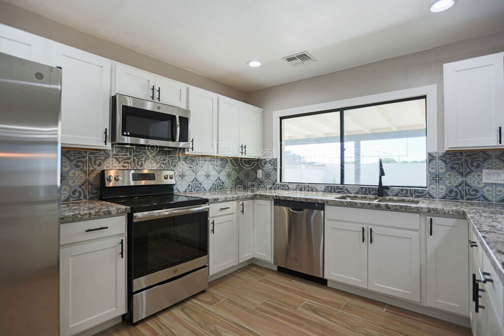 Beautifully renovated 5 bed, 3 bath Tempe home with no detail overlooked! This spacious home features an open floor plan, wood-look tile flooring, and a stunning kitchen with stainless steel appliances, granite countertops, white shaker cabinets, and modern lighting. Bathrooms are fully updated with tile showers and custom vanities, and the primary suite offers dual closets. Upgrades throughout include updated lighting, sinks, cabinet hardware, mirrors, and ceiling fans. Enjoy the massive backyard with a huge covered patio, Pebble Tec pool, and grassy area—perfect for entertaining. Pool and landscaping service included! Conveniently located near ASU, parks, shopping, dining, and freeway access. Rare updated Tempe pool home in a prime location! Lease end date to be 7/25/27. FOR ELECTRONIC APPLICATION, VISIT: Rent - $4,800 + 2% tenant care fee Refundable Security Deposit - $4,182.44 Nonrefundable Cleaning Fee - $496.56 ReKey Fee- $121 Application Fee - $50/Adult Admin Fee - $150 Pet Fee - $250/Pet (Lessor approval) Call listing agent for a video tour today! Colten Kowalski E & G Real Estate Services By submitting your information on this page you consent to being contacted by the Property Manager and RentEngine via SMS, phone, or email.