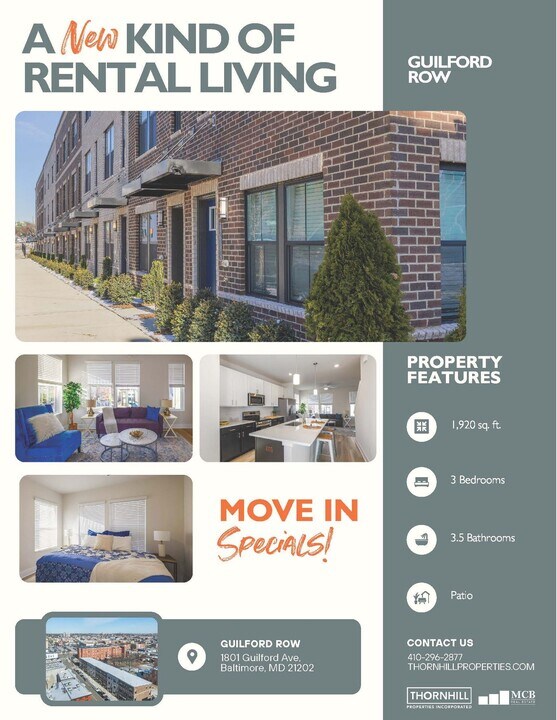 There is currently a 3 Bed 3 Bath Apartment for rent with 1,920 listed at 1817 Guilford Ave. It is Available Now.