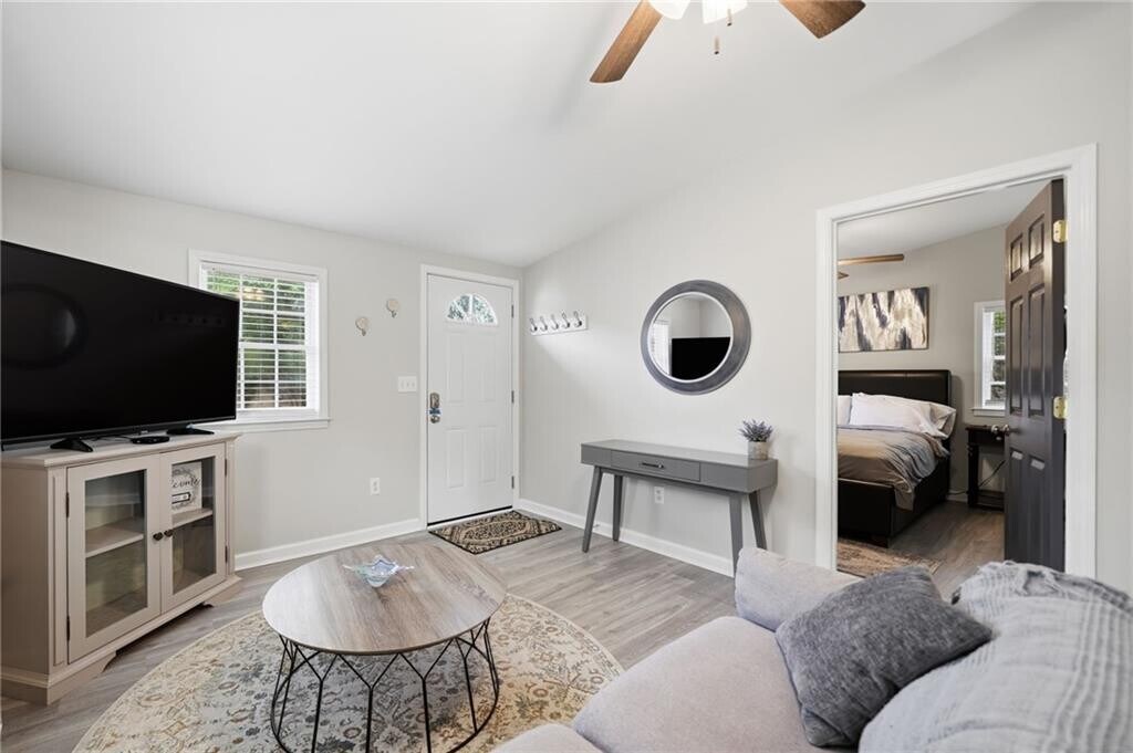 MID TERM RENTAL. ONLY AVAILABLE Jun 16-Aug 4,2026 or AFTER Sept 8 thru end of year. 30 Day Minimum - 90-120 Day Maximum. Fully furnished and all utilities are included. Charming,private guest house is thoughtfully set up for comfortable extended stays,making it a favorite for medical students completing clinical rotations at nearby hospitals and for grandparents visiting family. Guests love the quiet setting with deer and bunnies frequently passing thru the yard and it's convenient location close to Downtown Roswell,Downtown Woodstock,and Canton. This property shares a gravel driveway with the main house. 1 Dog Under 50 lbs allowed with pet deposit. No cats. Owner Agent MLS ID 7746017