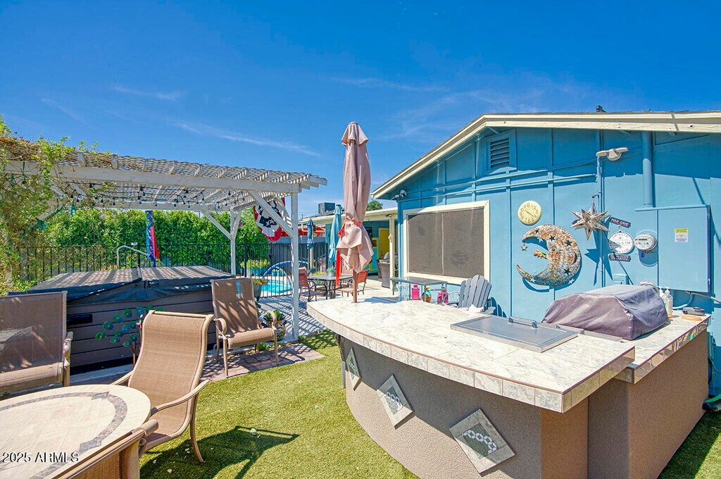 **TENANTS RIGHT** SPECTACULAR UNFURNISHED REMODELED HOME WITH ALL THE CREATURE COMFORTS YOU COULD WANT. NEW SHAKER 42'' CABINETS,QUARTZ COUNTERS,DESIGNER BACKSPLASH AND ALL STAINLESS APPLIANCES NEW WOOD-LOOK LAMINATE FLOORING IN ALL THE LIVING AREAS AND NEW CARPET IN THE BEDROOMS. SPLIT FLOOR PLAN W/GOOD-SIZE PRIMARY BEDROOM W/EN-SUITE BATH W/DUAL SINKS. POWDER ROOM OFF KITCHEN AREA AND THEN 3 OTHER GOOD-SIZED BEDROOMS AND A FULL HALL BATH. BACKYARD IS AN ENTERTAINER'S DREAM WITH AMAZING POOL,BUILT-IN BBQ AND COVERED PATIO AREA. HOME HAS SOLAR FOR REDUCED UTILITY COSTS. COME SEE AND LEASE TODAY!