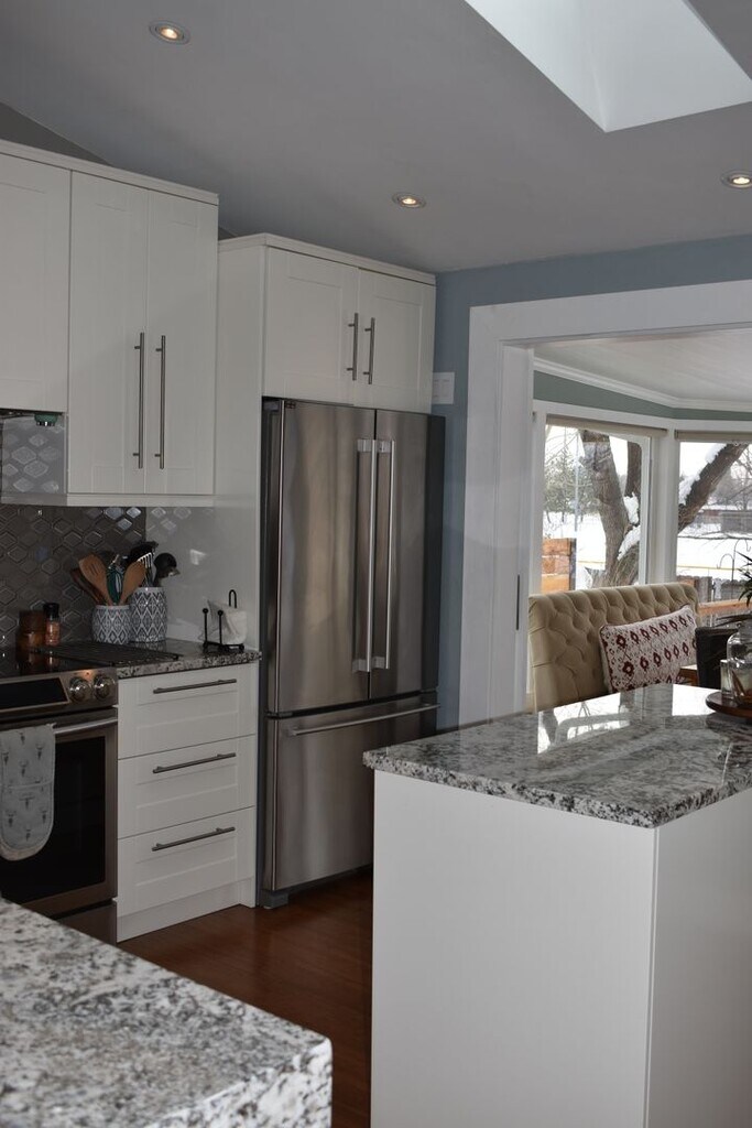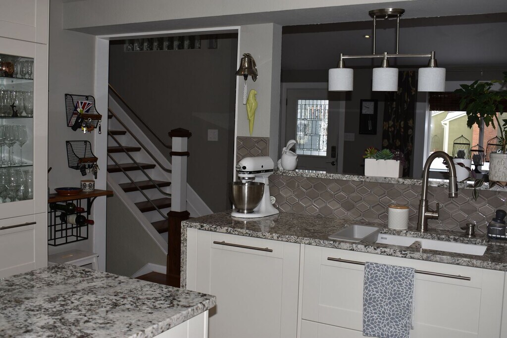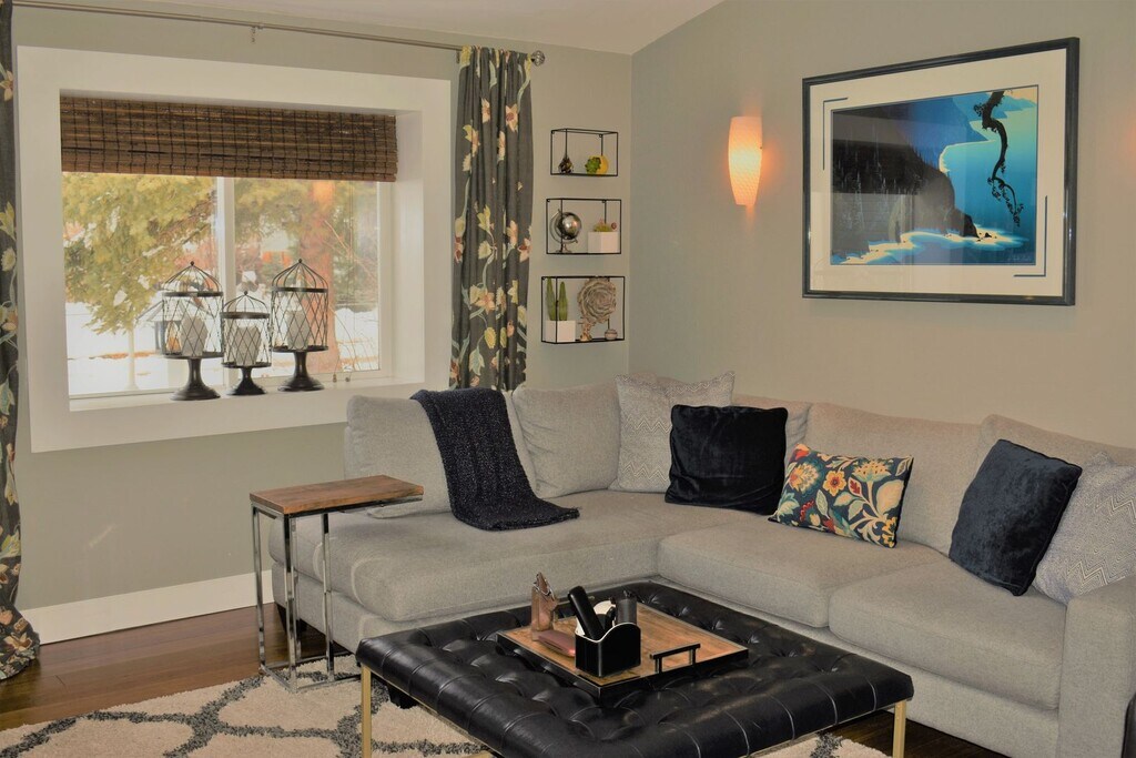 This home is absolutely lovely and completely remodeled! Full 2 Car Garage is available for storage or parking. Gorgeous tri-level home with lots of custom features, built-ins and remodeled top to bottom. Soaring vaulted ceilings and completely redone country kitchen with lots of built in shelving and cabinets make this home extremely modern and functional and give it a super classy vibe. A bright sun porch with walls of south-facing windows and tons of natural light overlooks Garden Acres park. The back yard is quite special and backs to green space and gives lots of privacy and peaceful energy. Hard flooring throughout. Flex space currently used as office space is open for interpretation. Bathrooms all remodeled and beautiful. Pets negotiable with extra pet rent and deposit.