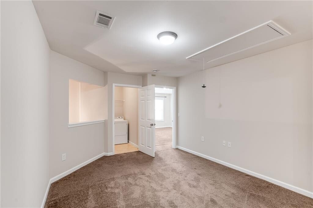 Burnie KingThis spacious 3-bedroom, 2.5-bath townhome in the desirable Ellison Lakes community offers nearly 2,000 square feet of comfortable living in a prime Kennesaw location. The home features brand new, light-colored carpet, adding a fresh and modern touch to the already inviting interior.A bright two-story foyer welcomes you in, with hardwood flooring extending through the kitchen, dining area, half bath, and entryway. The open floor plan includes a large great room with a marble fireplace and a separate dining area that is perfect for both everyday living and entertaining.The kitchen is well-appointed with solid surface countertops, stained cabinetry, a pantry, and a clear view into the family room. Upstairs, a spacious loft area offers flexible options ideal for a sitting area, home office, or media space. The oversized primary suite features a double vanity, soaking tub, and separate shower. Two additional bedrooms, a full bath, and a convenient laundry room complete the upper level.Additional highlights include a two-car attached garage with automatic opener and a private rear patio overlooking a landscaped yard. Enjoy access to fantastic community amenities, including a clubhouse, pool, and lake. Conveniently located near KSU, I-75, shopping, and dining. This townhome offers comfort, convenience, and flexibility.