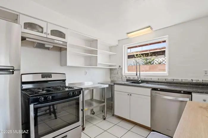 Beautifully updated move-in-ready 2-bedroom 2-full bath home located in a prime central area that's walking distance to shopping and restaurants, and a short 2 mile commute to the University of Arizona. Kitchen was recently renovated and includes new refrigerator, dishwasher, gas range, sink, fixtures and counters. Baths include newer modernized showers and toilets. Owned solar system results in monthly electric utility bill credit. Home also includes newer roof, windows, water heater, washer, dryer, and more. HVAC was replaced in 2019.