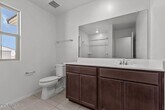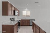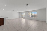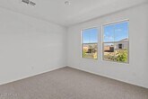 This beautiful, single-story home showcases an open floor plan with tile flooring and a generous great room that provides access to a charming covered back patio. The thoughtfully designed kitchen boasts modern quartz countertops, a large island and stainless steel appliances. The primary bedroom features plush carpeting and a connected bath that offers a walk-in shower, dual-sink vanity and enclosed water closet. Additional highlights include a garage service door, energy-efficient A/C, smart thermostat and ceiling fan pre-wiring at great room and bedrooms. Back yard landscaping being installed.