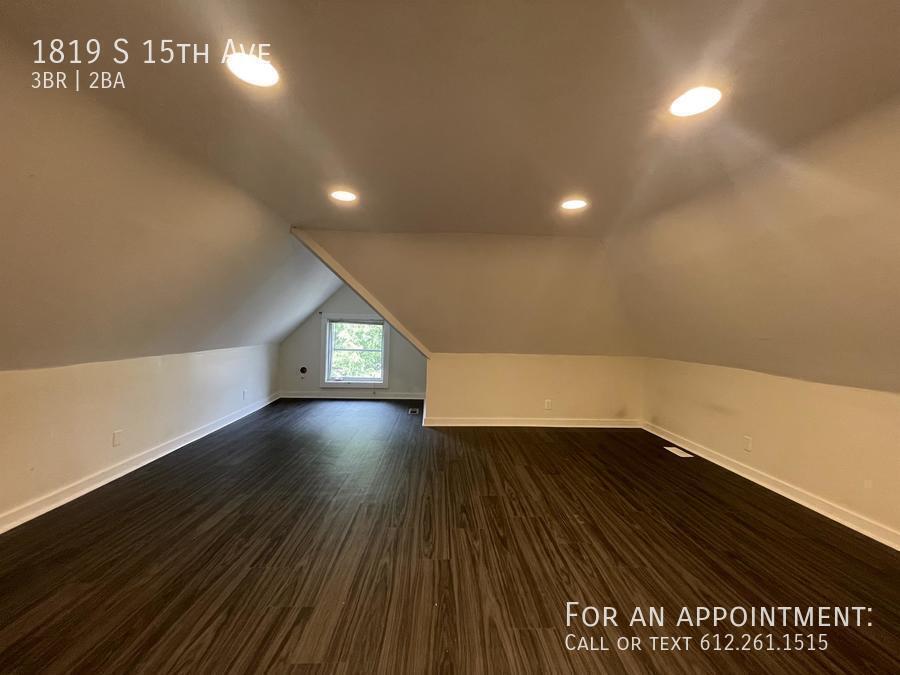 Upper level unit 3 bedroom, pet friendly 15th Ave S! Gorgeous and unique 3 bedrooms, 1.5 bath Upper Level Unit has new kitchen and baths. Spacious unit has a huge attic bedroom with half bath and extra family room. Beautifully updated unit in a duplex newer heating system and exterior paint, landscaping, fence yard. Comes with stainless steel appliances, gorgeous granite countertop, and has hardwood floors. Pet friendly. Laundry in basement. Sorry No Garage. TO SCHEDULE SHOWINGS, copy/paste link to your browser: 3D Virtual Tour- Rental criteria: Household rent to income ratio=35% No felonies within 7 years No evictions within 2 years Must view unit in person No history of missed payments/Delinquent Debts Application fee is $70 per person/nonrefundable Max tenants= 4 Utilities paid by tenant- Electric, Gas, Cable/Internet, 50% Water/Trash, Snow/Lawn Pet Fee: Small dog under 25 lbs. extra $30/month or 1 cat extra $25/month. All pets must go through pet screening: