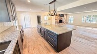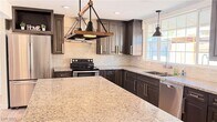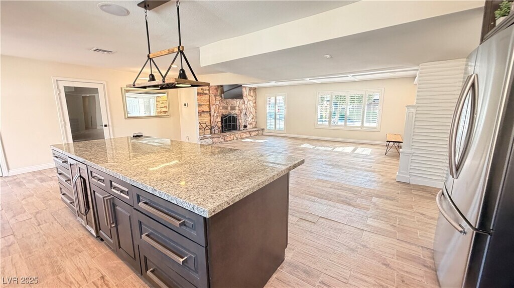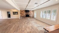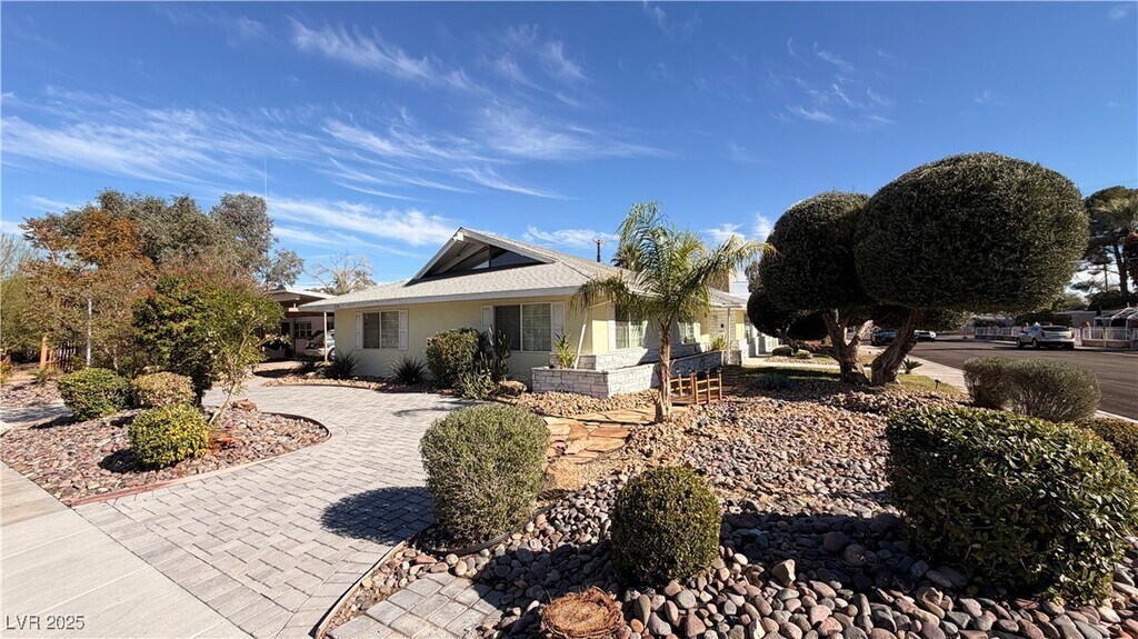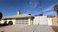 Lovely and spacious 4-bed, 3 bath single-story midcentury modern ranch home on a corner lot in Historic Beverly Green. Walking distance to the Las Vegas Strip and the Arts District, with gorgeous views of the Strip. The home features an impressive great room with an open concept living area and gorgeous kitchen with 8-foot granite countertop island, plenty of cabinet space, and SS appliances, brand new DW and wine fridge. The living room offers midcentury charm and features a large wood-burning fireplace. There are three modern and spa-like bathrooms with new showers/toilets; the primary bedroom with attached bathroom has a Japanese soaking tub and dual vanities. This home has fresh new paint, ceramic tile throughout, California shutters, coffered ceilings in the living room, wainscoting, 2 newer HVAC units, and much more! There is a 2-car garage with additional gated RV/boat parking, as well as a separate circular driveway. 220V outlet in the garage for EV charging