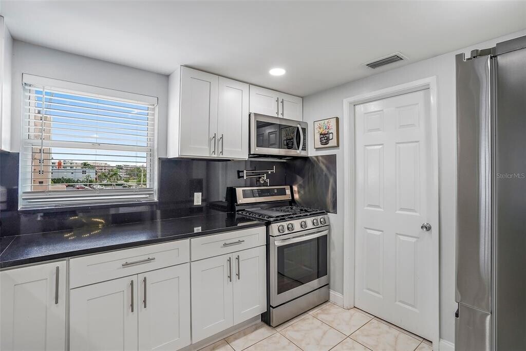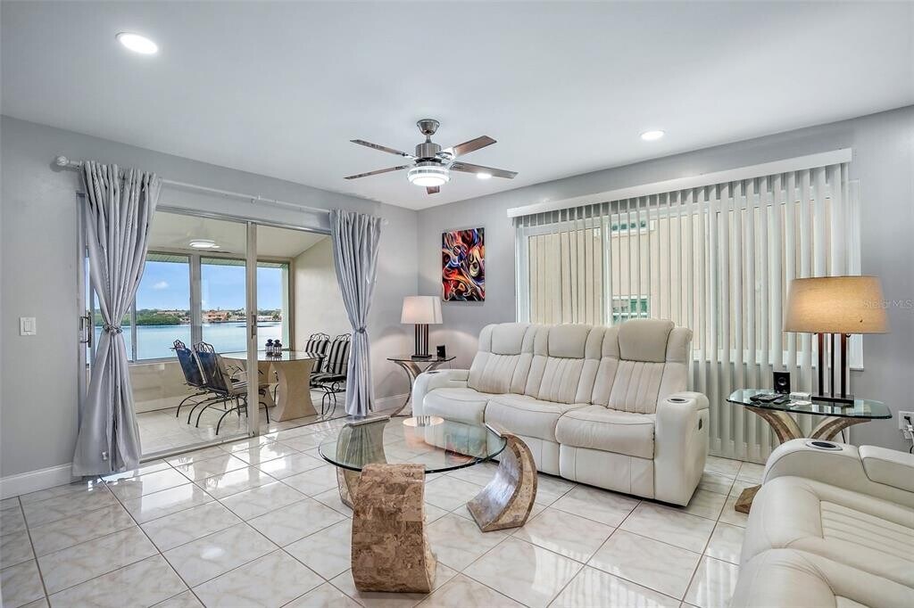 Escape to your own private oasis with breathtaking views of the Intracoastal Waterway overlooking the Boca Ciega Bay and the Pasadena Marina,just a short walk or bike ride to the St. Pete Beach. Enjoy spectacular sunsets from the comfort of your own home. Create lasting memories while watching dolphins swimming,leaping,and playing in these waters. Top floor 2-bedroom 2 bath renovated corner unit. Living room with dining area and open kitchen provides a seamless and versatile living space,maximizing the flow of natural light throughout. Dramatic and alluring kitchen cabinets,quartz countertops,newer SS appliances and an amazing storage room,perfect for small appliances. Sleek modern design bathrooms with tiles throughout most of the areas including walls,providing a cohesive and water-resistant aesthetic look,master bath includes a shower panel tower system. Updated impact windows,modern ceiling fans with remote controls in every room,updated lighting and electric. Florida room also includes a large storage room. Shore View is a well-managed and maintained 55+ community with only 51 units,new underground plumbing system 2021,renovated roof,seamless gutters in 2019,other updates; hot water system,exterior paint,resurfaced walkways,railings,resealed and stripe parking area. The Shore View Association has completed both the Milestone and SIRS Inspections. HOA amenities include water,cable,internet and gas. Building community includes heated pool,sun deck,grills and shuffleboard. Act fast - homes like this don't stay on the market for long. MLS# TB8458184