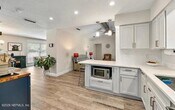 This coastal charm Neptune Beach home has been thoughtfully updated and meticulously maintained,offering a perfect blend of style and functionality. This home features 4 bedrooms and 2 bathrooms,along with multiple living areas that provide flexibility for both relaxation and entertaining. The open,light-filled kitchen is a standout,complete with appliances,countertops,white cabinetry,and classic tile backsplash. Throughout the home,you'll find wood-look tile flooring with a neutral color palette,creating a warm and cohesive feel. The inviting master suite opens to a beautifully designed outdoor retreat,showcasing paver flooring,built-in bench seating,and ambient lighting. Additional highlights include an indoor laundry area,ample storage,and an oversized two-car attached garage finished with epoxy flooring,a knockdown ceiling,and a dedicated space for an outdoor fridge and beach gear. lawn-service included. Dog-friendly! MLS# 2141897