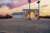 Welcome to Desert Hills! Breathtaking mountain views from a fully useable acre plus homesite. Room for everyone and everything. Inside,this highly upgraded home features high ceilings and wood look flooring. The bright kitchen flows seamlessly into the dining area and great room. Quartz counters and stainless steel appliances. First level primary retreat with plush carpet,ensuite bath with separate soaking tub,dual sinks and a walk-in closet. Massive 30 x 30 garage. Custom iron-fence encloses the yard and it's refreshing swimming pool. Large sunning deck and patios to view amazing sunset vistas! Plenty of room on this lot. Shed included for additional storage. Dual AC for both levels of the home